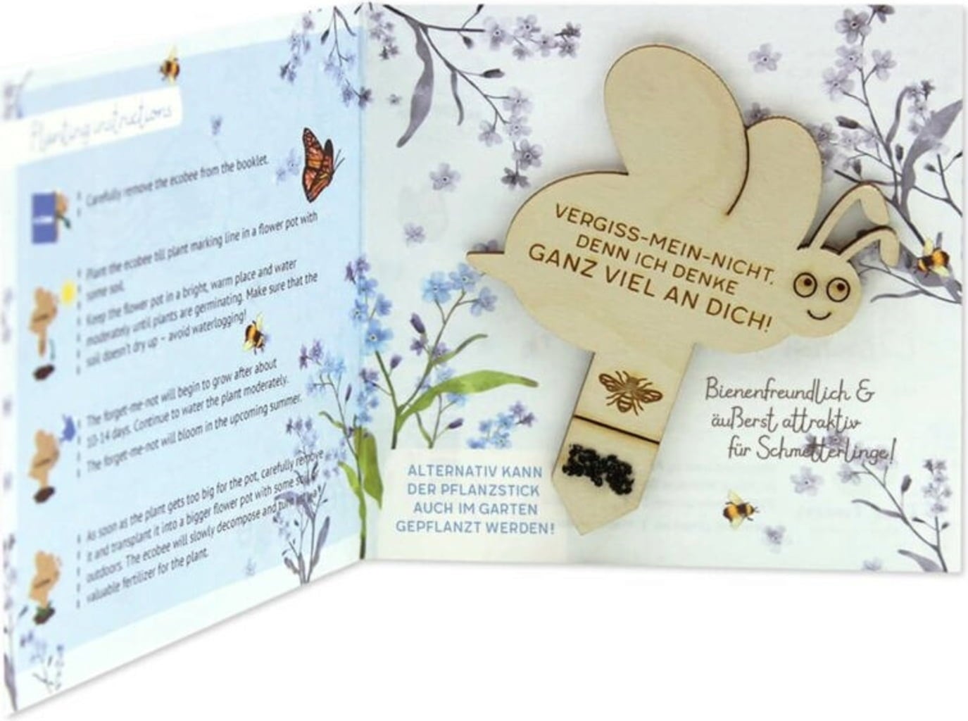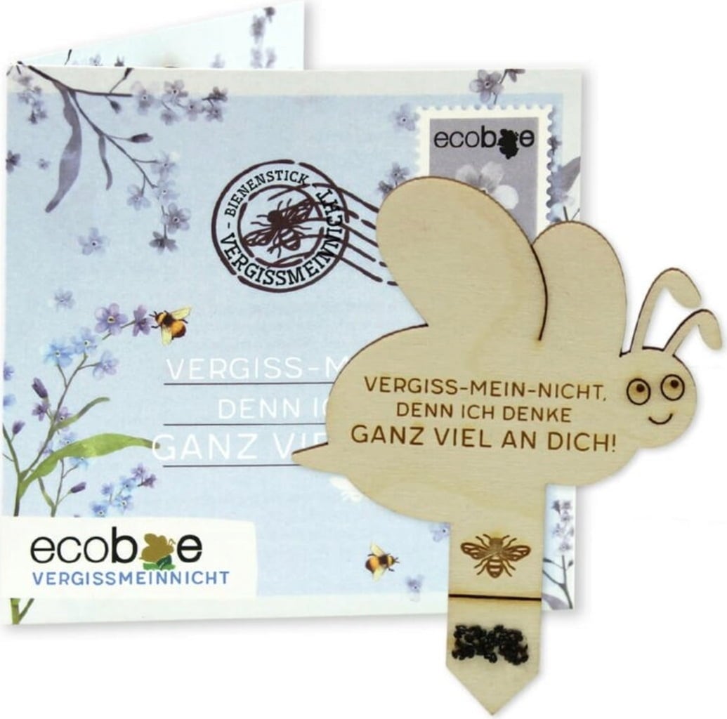 ecostick "ecobee" är en hållbar gåvoidé och en fin liten present till någon du tycker extra mycket om. Den lilla biet av trä sticks ner i jorden och förvandlas efter en tid till en blommande blå förgätmigej. En present som kommer från hjärtat och som garanterat blir ihågkommen länge.