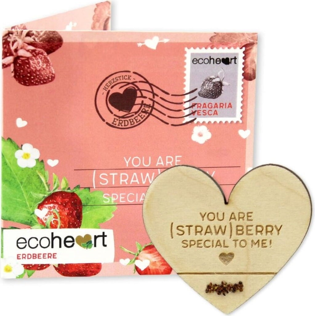 ecostick "ecoheart" är en hållbar presentidé och en hjärtlig present till någon du tycker lite extra mycket om. Det lilla trä-hjärtat sticks ner i jorden och växer snart upp till en smultronplanta. De ekologiska fröna ger aromatiska bär som passar perfekt för alla som älskar livets goda.