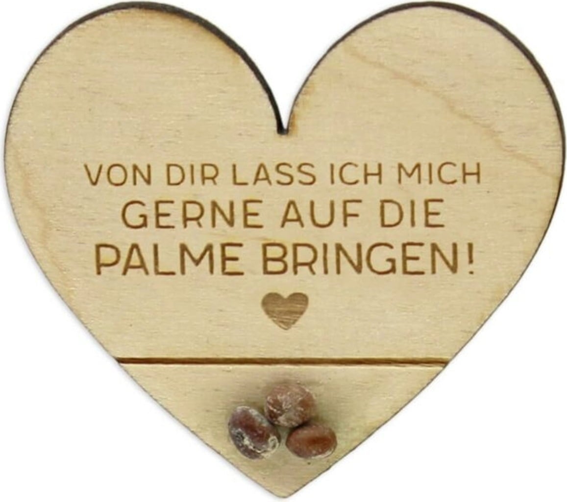 ecostick "ecoheart" är en hållbar presentidé och en hjärtlig present till någon som du vill skämma bort lite extra. Det lilla trä-hjärtat sticks ner i jorden och utvecklas till en vacker palm som gärna står utomhus på sommaren. Den tål till och med kortvarig frost ner till -2 °C. En exotisk överraskning som ger glädje länge.