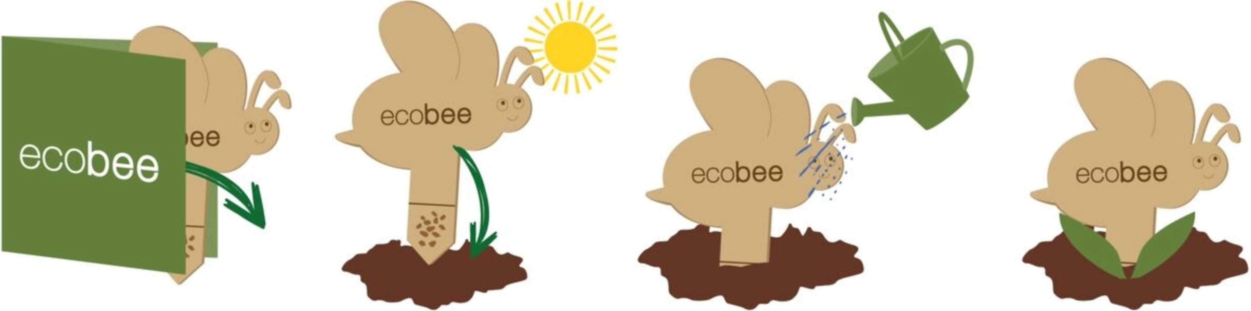 ecostick "ecobee" är en hållbar presentidé och ett ljust litet presenttips för någon du tycker om. Den lilla träbikupan sticks ner i jorden och utvecklas till en charmig dvärgsolros. En present som värmer hjärtat och som kommer att bli ihågkommen länge.