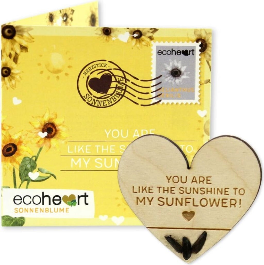 ecostick "ecoheart" är en hållbar och hjärtlig presentidé som passar perfekt för någon som betyder lite extra. Det lilla trä-hjärtat sticks ner i jorden och växer snart upp till en söt dvärgsolros som sprider glädje med sin gyllene blomma.