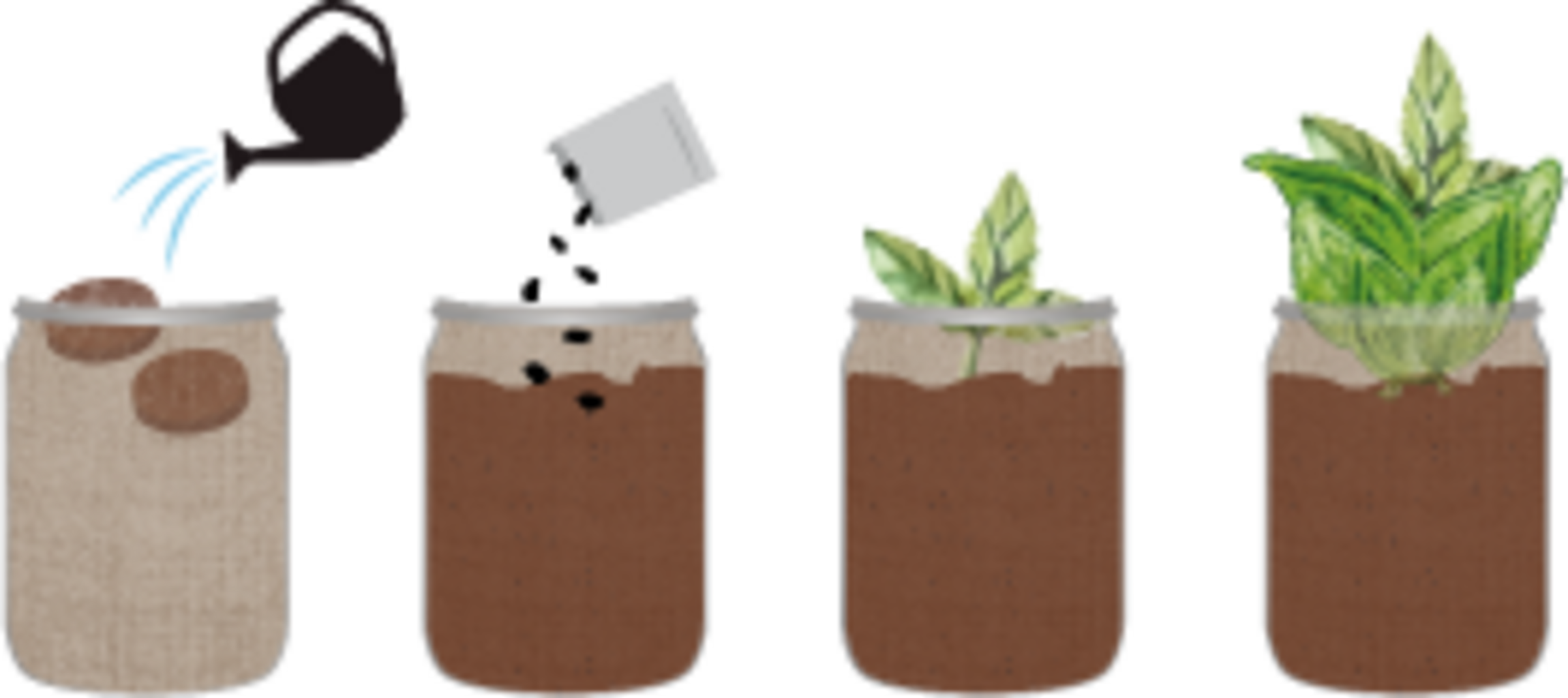 - Häll cirka 350 ml vatten i glaset med kokosfiber-tabletter och jutesäck.