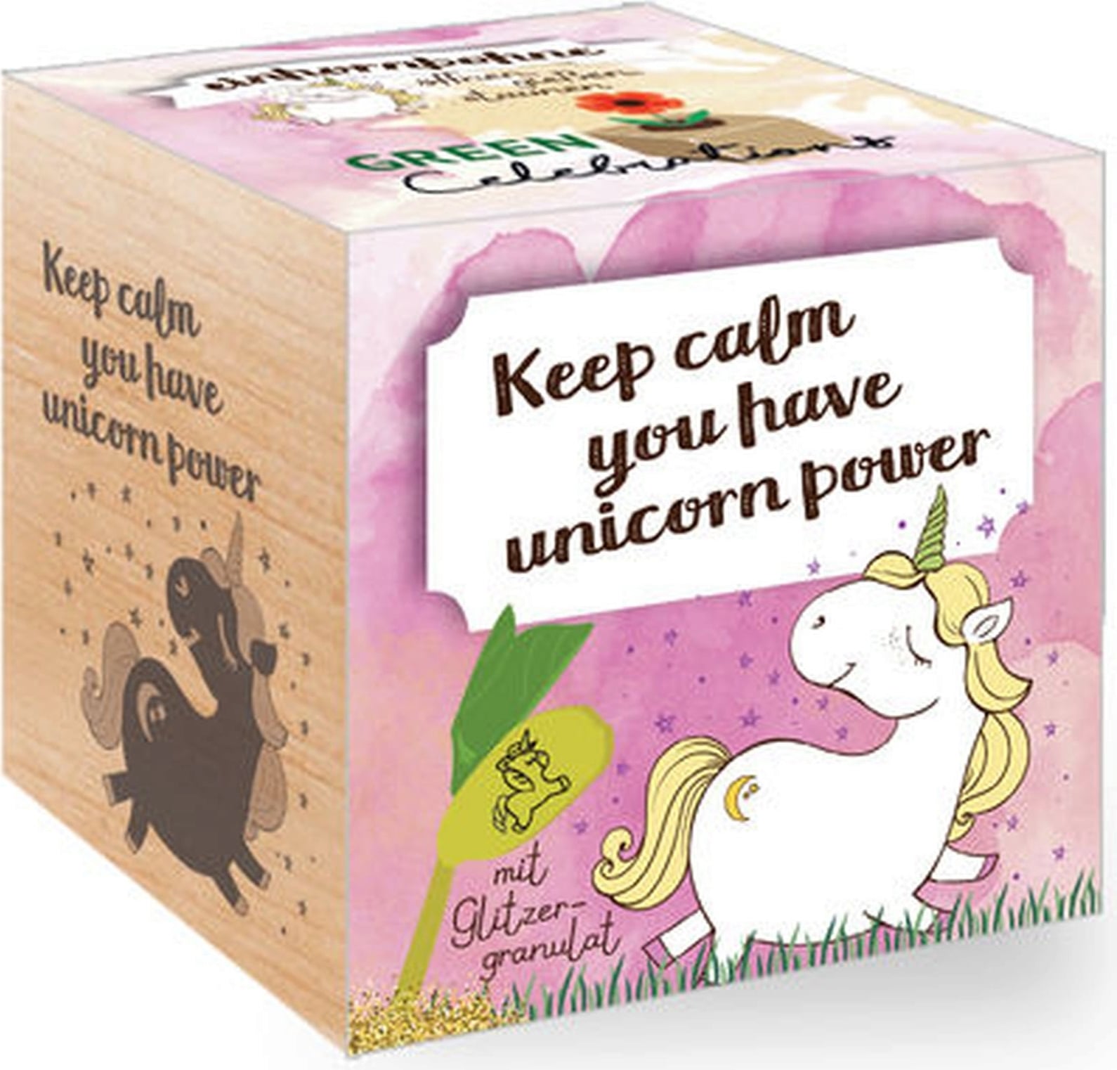 Letar du efter en unik och personlig present som får barnhjärtan att slå lite snabbare? Då är Green Celebrations specialutgåva "Grow Your Own Unicorn" det perfekta valet! Träkuben i al är vackert graverad och innehåller ett enhörnsfrö samt ett glittrande odlingsgranulat.