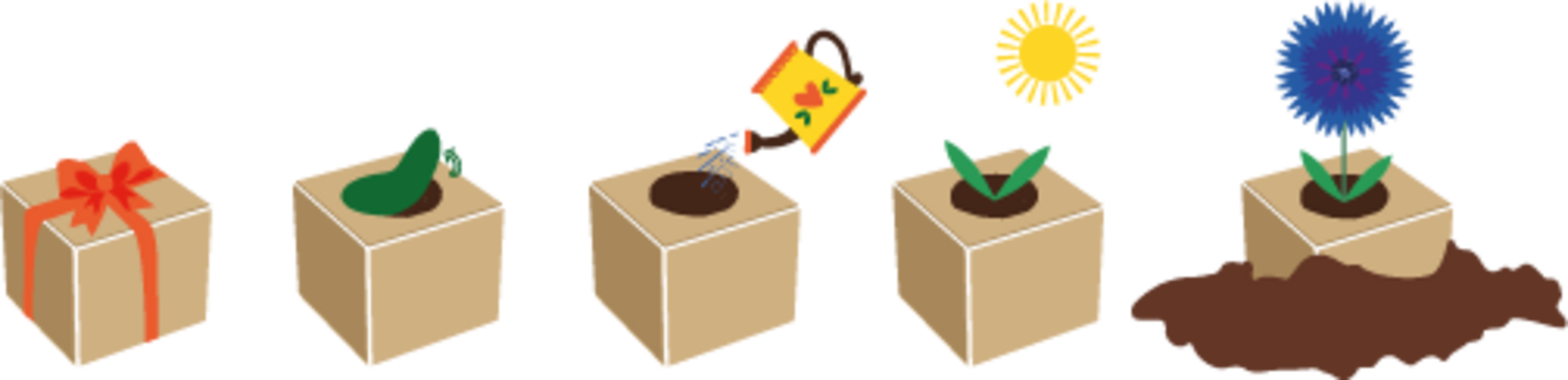 - Efter cirka 10 månader kan hela kuben planteras om i en kruka.