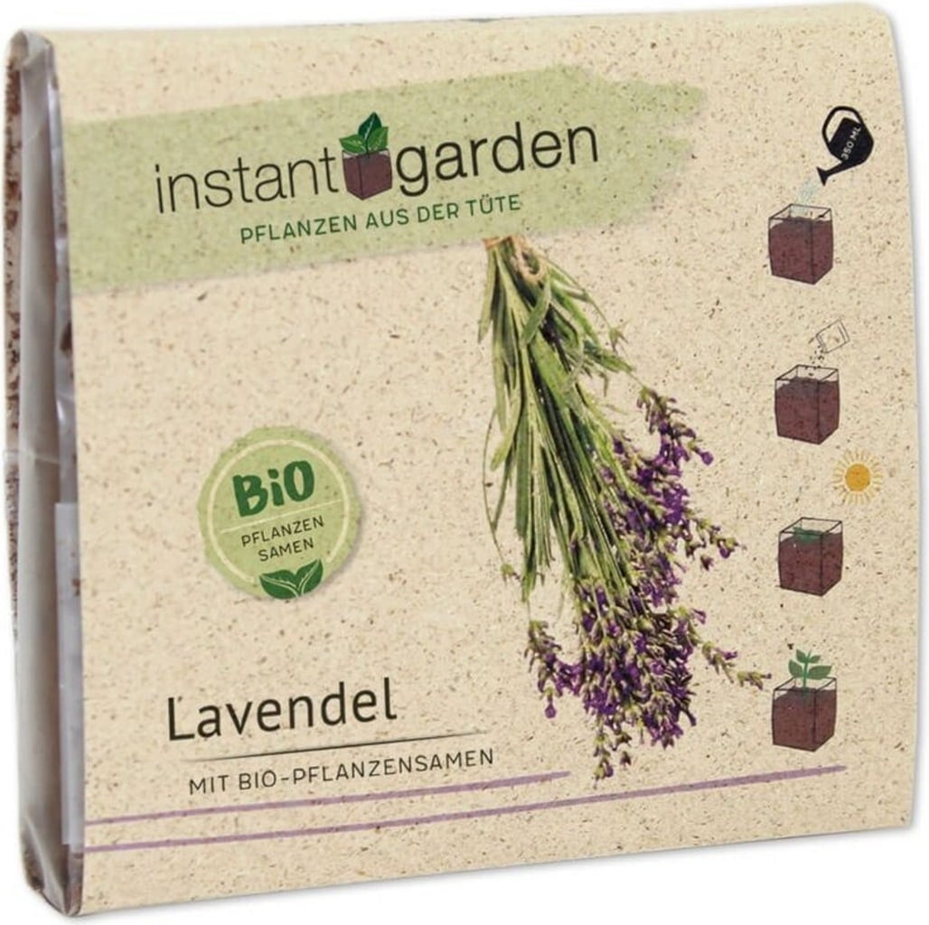 Med instant garden förvandlar du din fönsterbräda till ett blommande lavendelparadis. Kryddväxten passar utmärkt i köket eller till doftpåsar, eftersom de små blommorna sprider en underbar doft. Setet innehåller redan allt du behöver för odlingen. Du behöver bara tillsätta vatten. I den praktiska påsen kan din lavendel för övrigt stå kvar i upp till ett år.