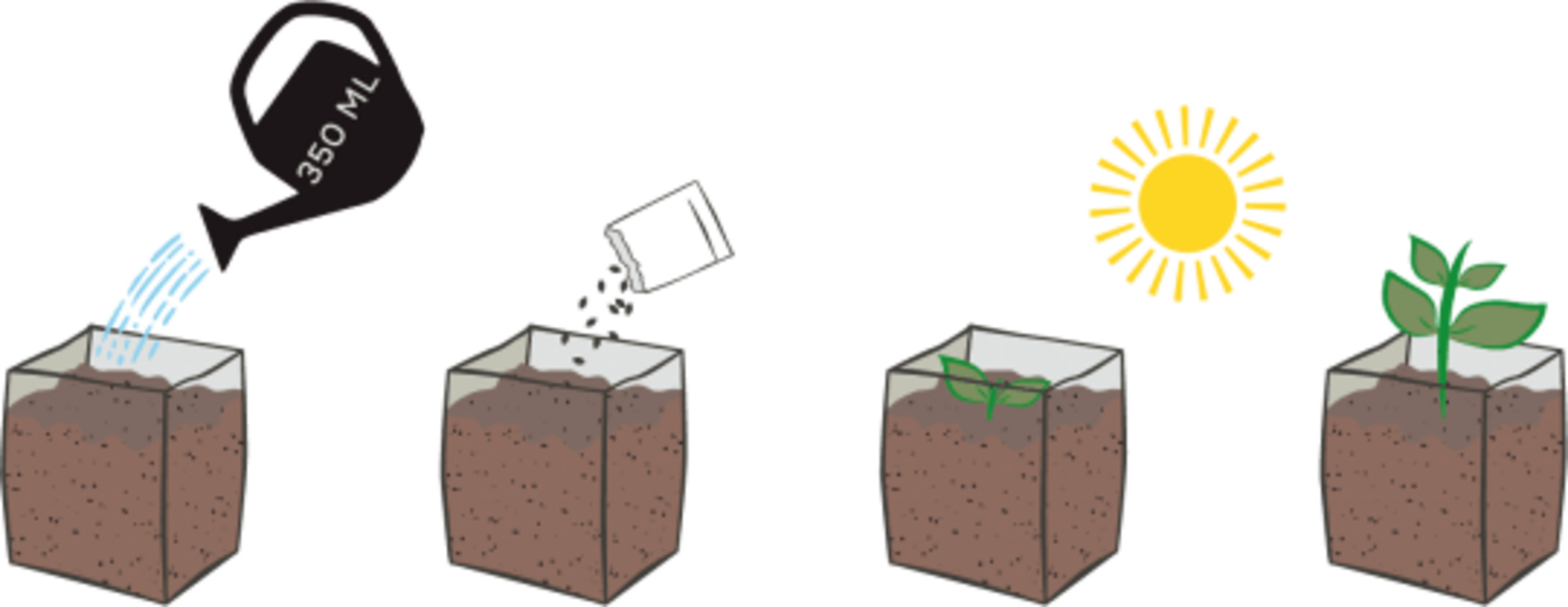 - Vattna var tredje dag med cirka 30 ml vatten tills fröna gror.