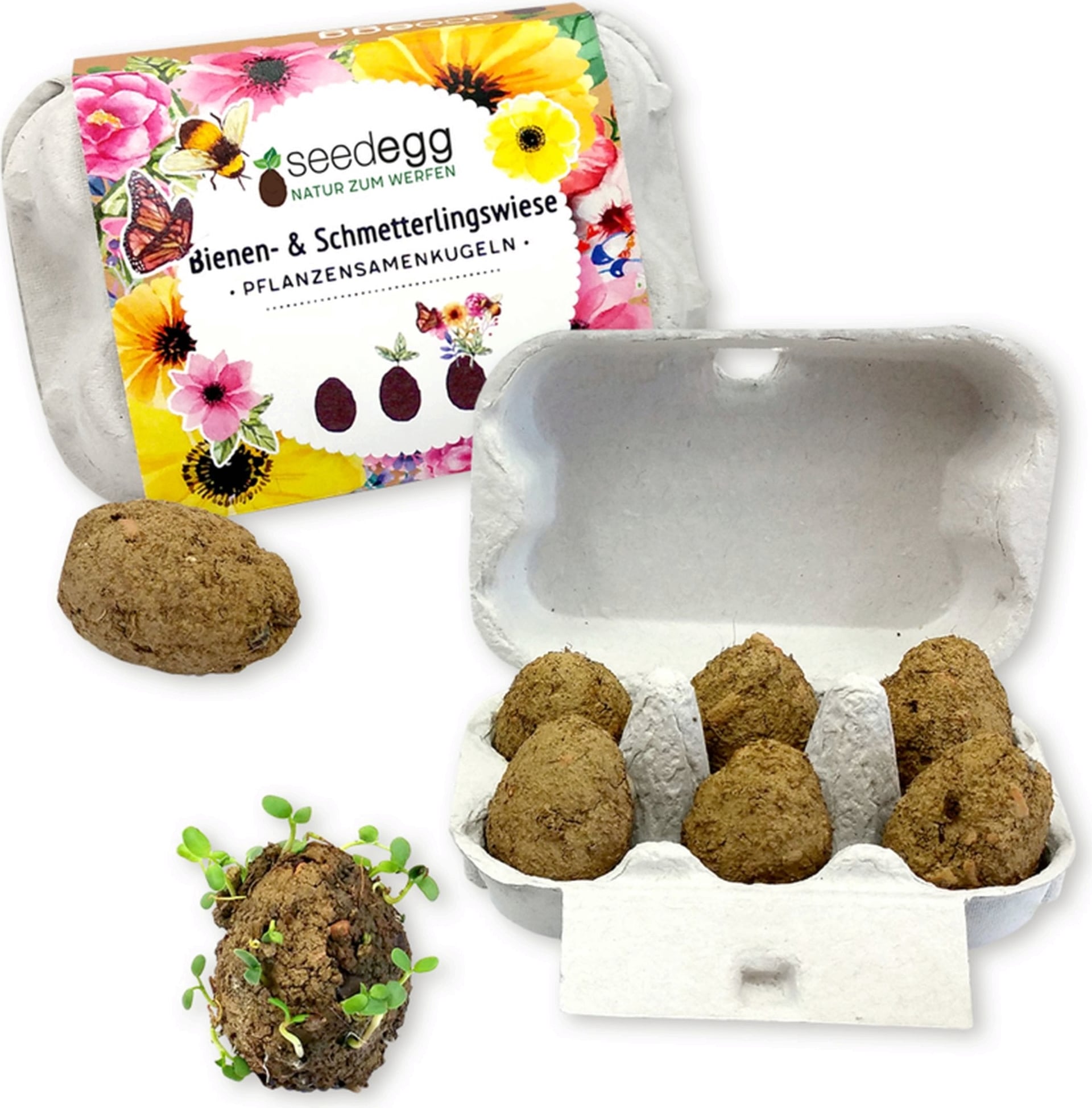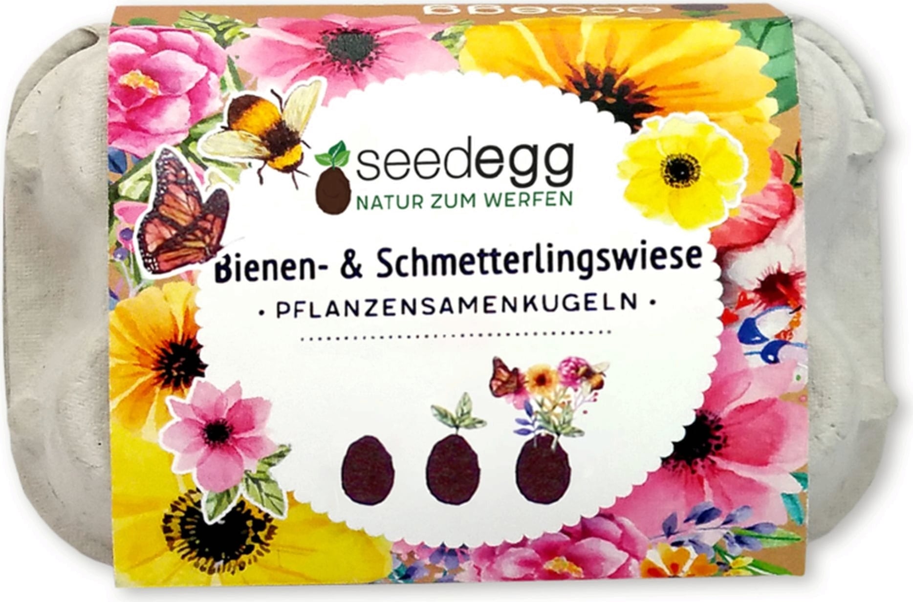 De handgjorda wildflower meadow-seedeggsen innehåller ett urval av ekologiskt odlade frön som ger kontinuerlig tillgång till nektar från pollenrika baljväxter och vildblommor. Växterna är noggrant utvalda för att blomma vid olika tidpunkter, vilket gör att det alltid finns näring för våra flygande vänner.