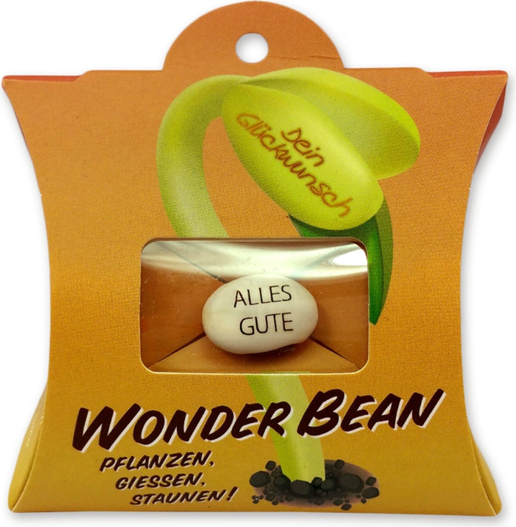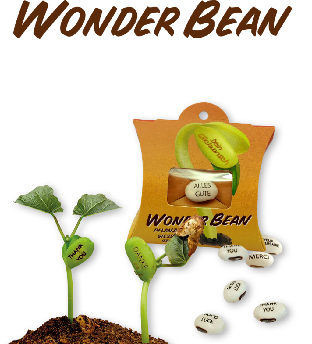 Letar du efter en liten men väldigt speciell present? Då är denna jackböna, även kallad jätteböna - med en ingraverad hälsning eller lyckönskning - helt perfekt! WonderBean skapar en riktig wow-känsla och tack vare öglan passar den även utmärkt som en extra detalj på ett presentpaket.
