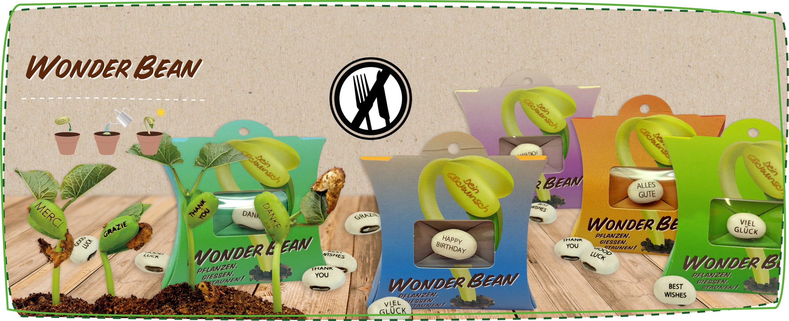 - WonderBean innehåller en lasergraverad så kallad jackböna eller jätteböna