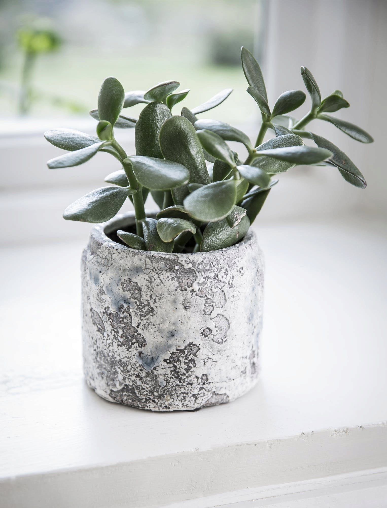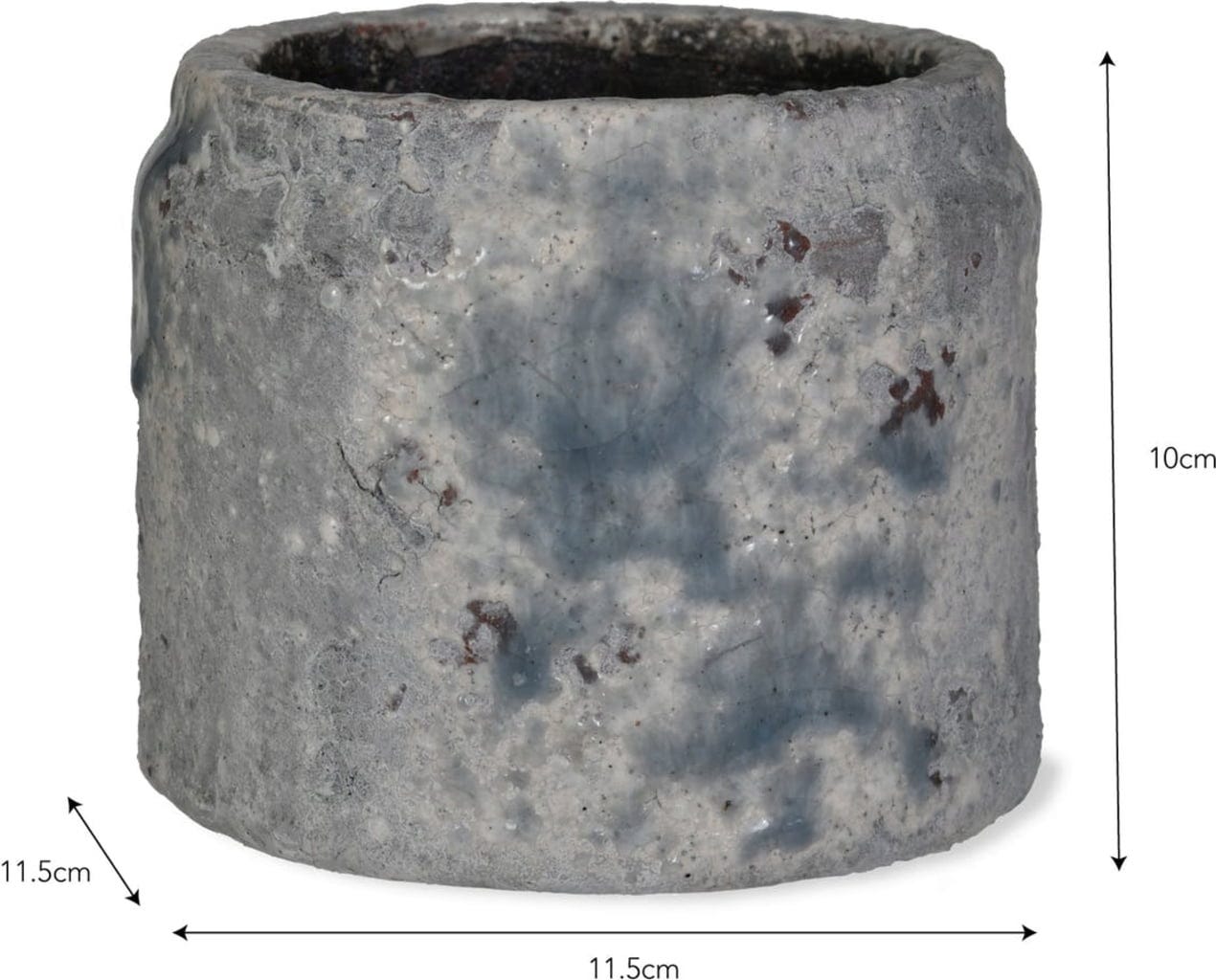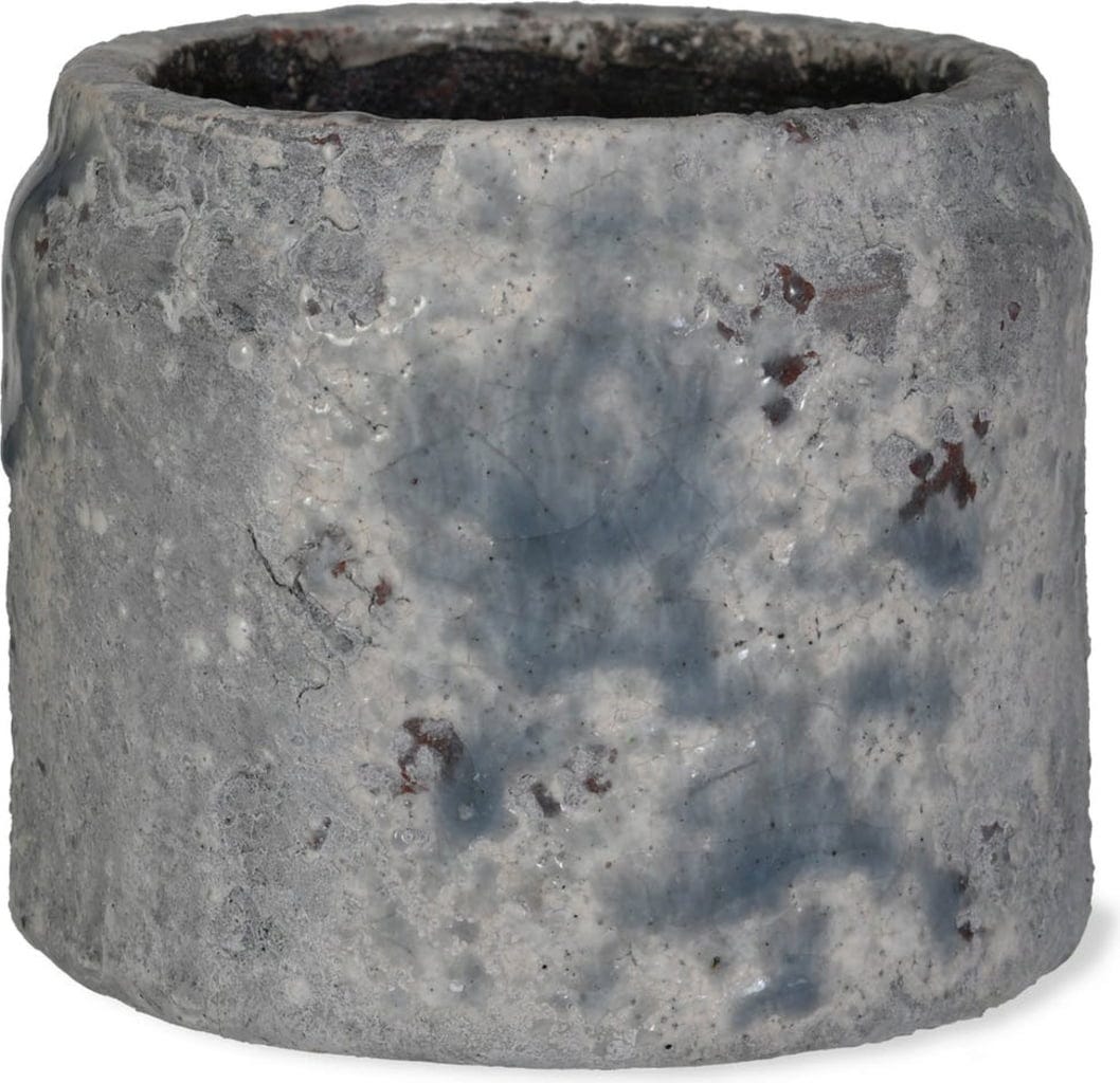Denna blomkruka imponerar med sin unika design som gör den till ett riktigt blickfång. Den glaserade keramiken med sitt vackra färgspel i vitt, grått, brunt och blått för tankarna till en mosaik och gör krukan till en dekorativ höjdpunkt. På så sätt lyfter du fram dina växter på ett stilfullt sätt.