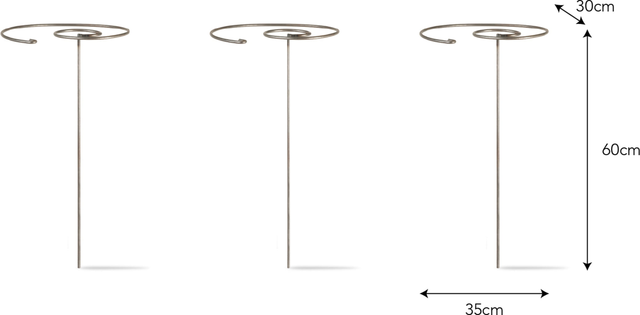 Dessa växtstöd ger dina fleråriga växter det stöd de behöver för en sund och kraftig tillväxt. Den spiralformade designen är inte bara dekorativ utan gör det också enkelt att anpassa stöden efter dina växter. Med tiden utvecklar de dessutom en attraktiv rostfinish som förstärker deras uttryck.