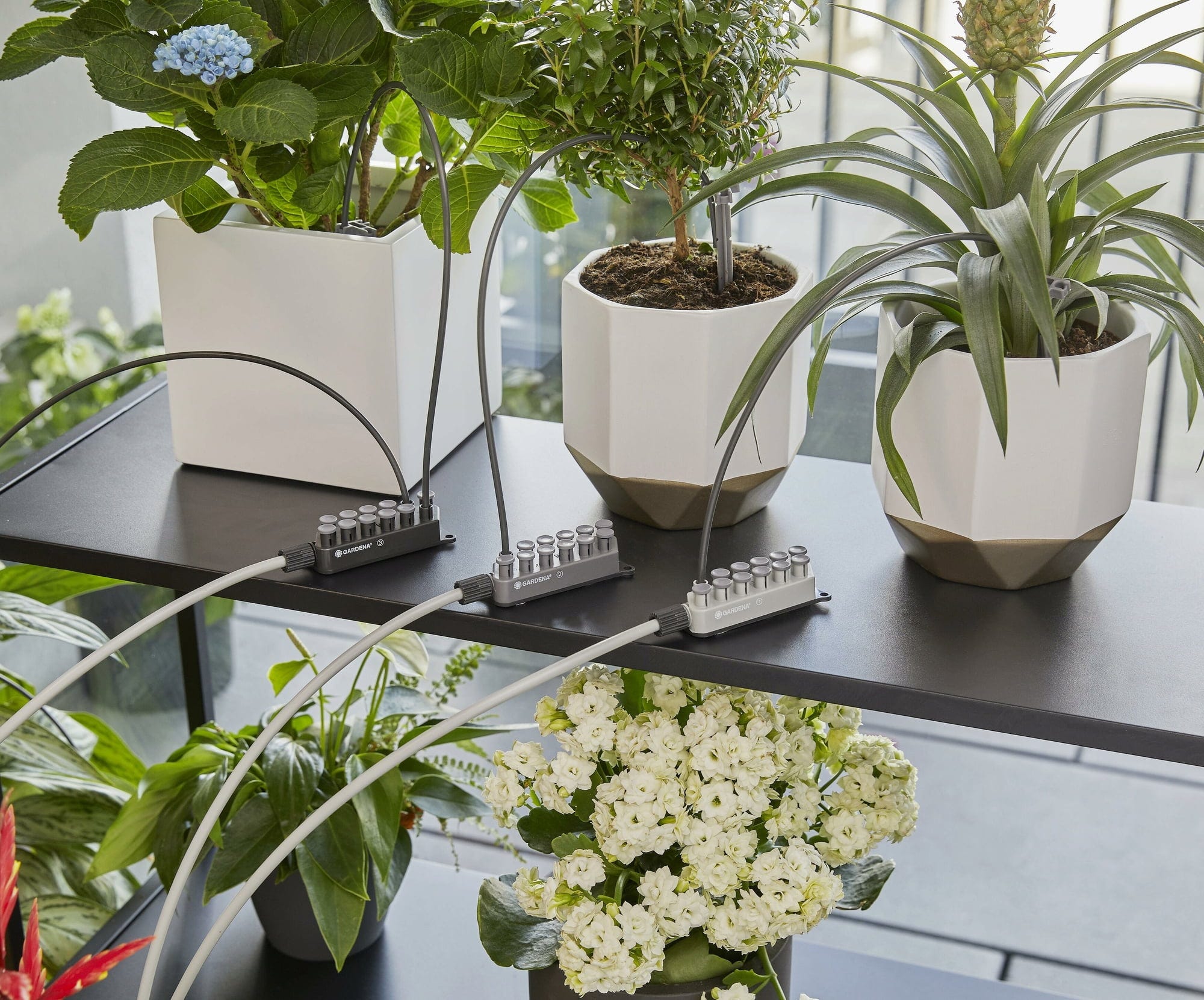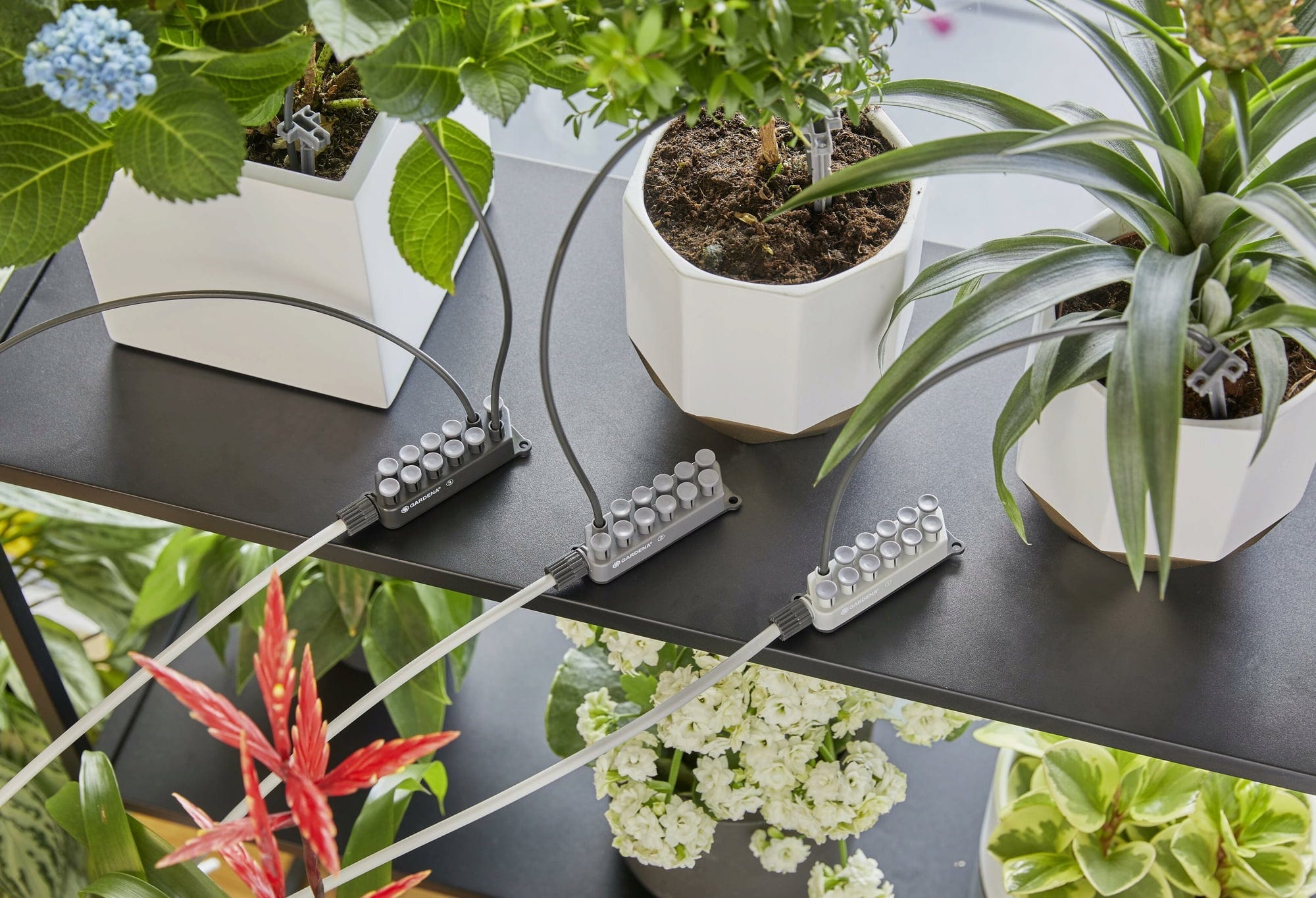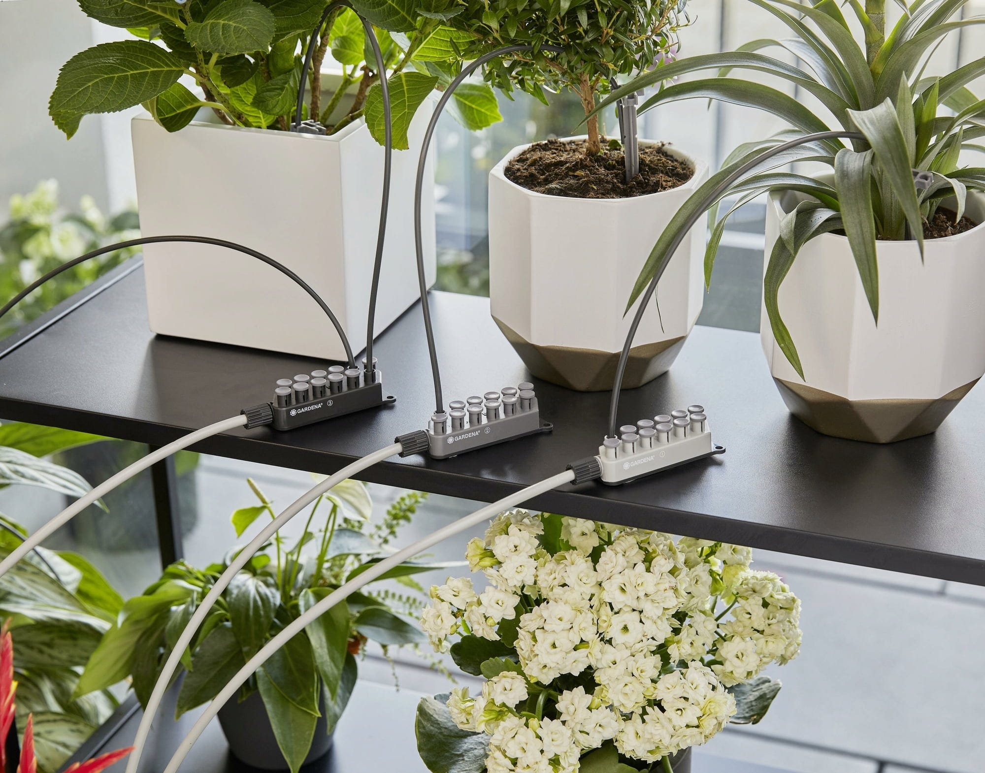 Detta GARDENA semesterbevattningsset förser dina krukväxter med vatten på ett tillförlitligt sätt medan du njuter av en avkopplande och bekymmersfri semester. För användning krävs inte ens någon vattenanslutning - det enda som behövs är ett eluttag och sedan är det bara att köra igång.