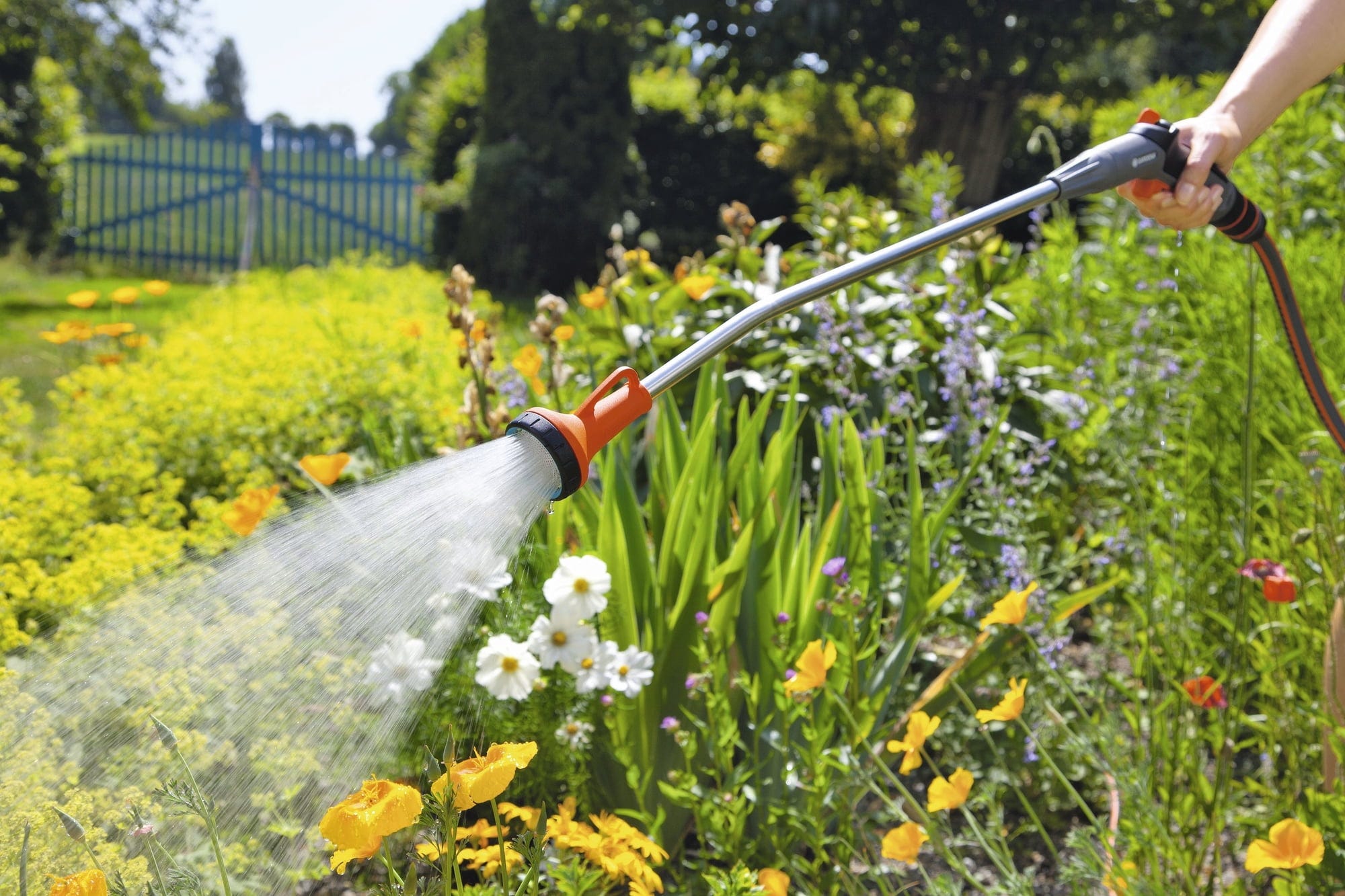 Med denna praktiska bevattningsstav kan du vattna din trädgård både skonsamt och exakt. Den underlättar särskilt bevattning av större ytor som rabatter och gör det enkelt att reglera spraystrålen direkt från rabattkanten.