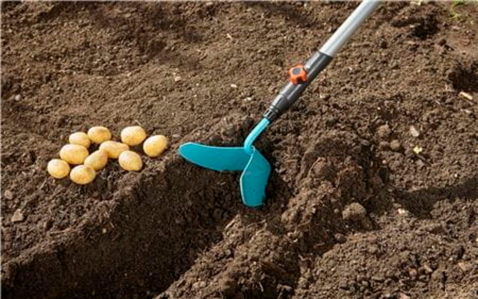 combisystem kupplog GARDINO gör det enklare att kupa grönsaksland. Med spetsen skapar du jämna fåror utan större ansträngning - potatis och andra grödor kan planteras snabbt och enkelt.