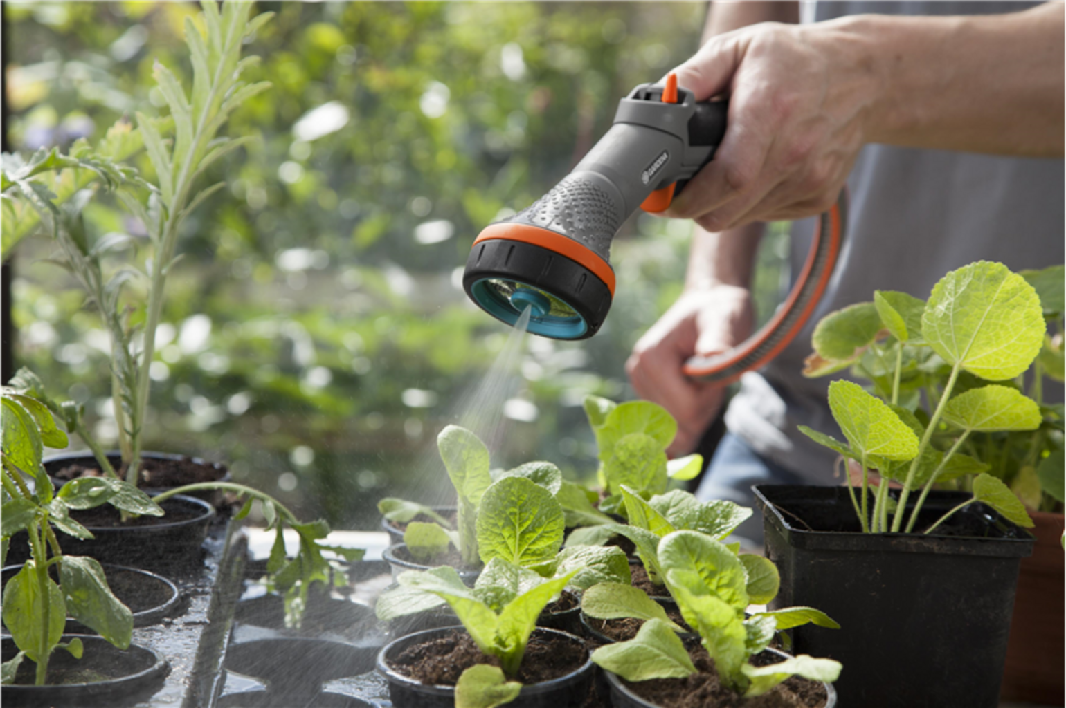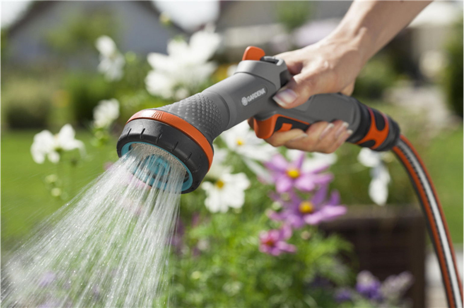 Comfort duschmunstycke från GARDENA är särskilt utvecklat för känsliga växter som blommor, örter och ömtåliga plantor. Du kan välja mellan en mjuk duschstråle och en extra fin spraydimma. För ännu större flexibilitet kan du dessutom reglera vattenflödet steglöst.