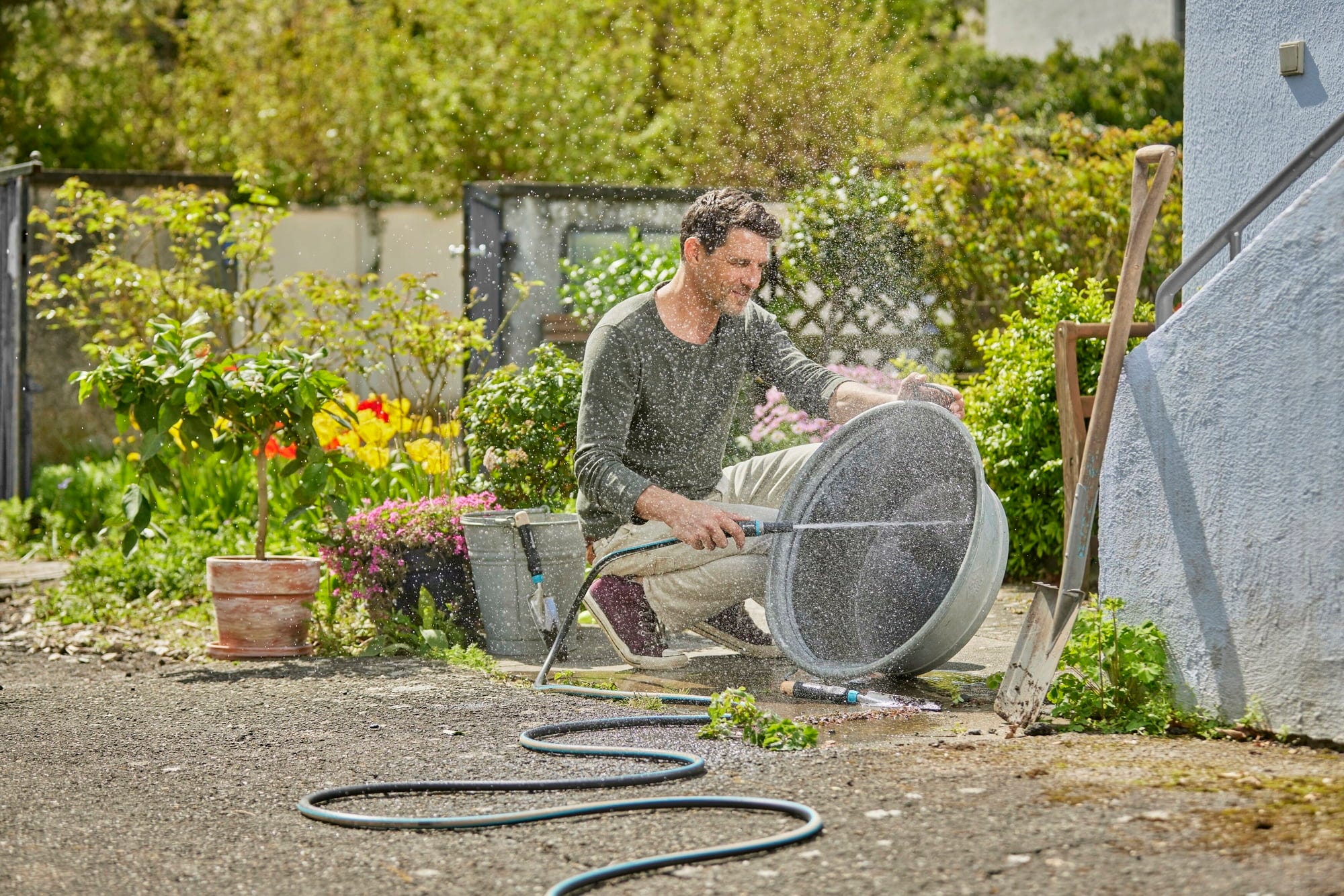 Den hållbart producerade GARDENA EcoLine-slangen består till stor del av återvunnet material och är dessutom fri från skadliga ämnen. Eftersom den är mycket smidig och lätt kan den enkelt rullas upp på en slangvagn. Den innovativa Power-Grip-profilen säkerställer en säker anslutning mellan slang och kopplingar. Tack vare att slangen är UV- och frostbeständig kan den lämnas utomhus i alla väderförhållanden.