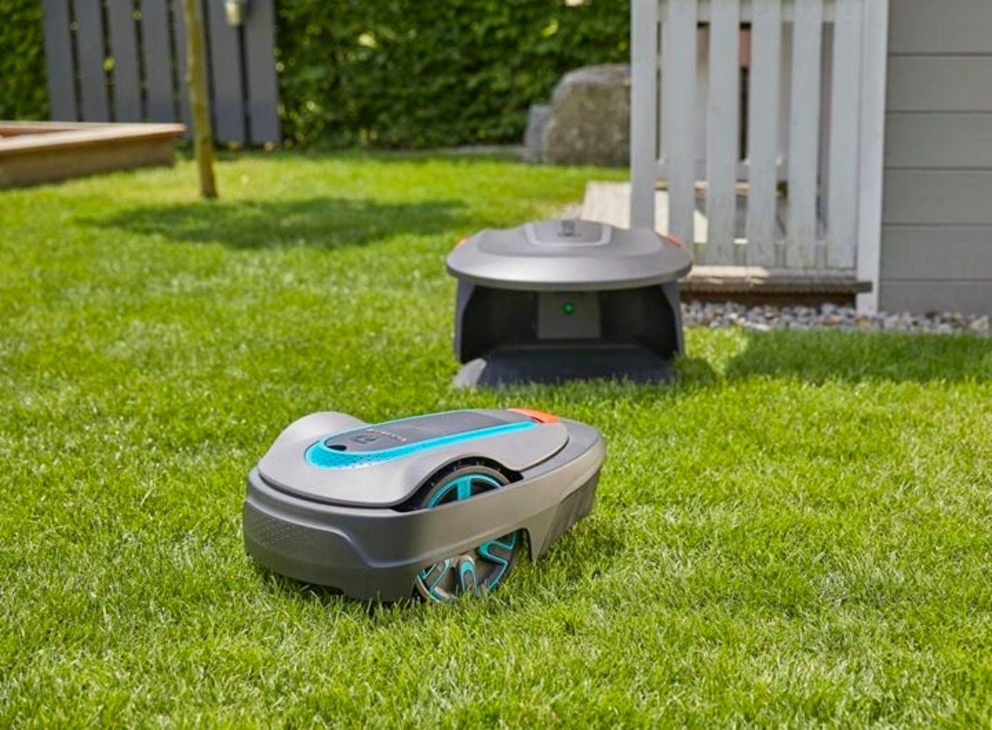 Gardena robotgräsklippare är mycket robusta och designade för arbete utomhus. Trots det kan extra skydd - för både robotgräsklippare och laddstation - mot regn och sol vara en bra idé.
