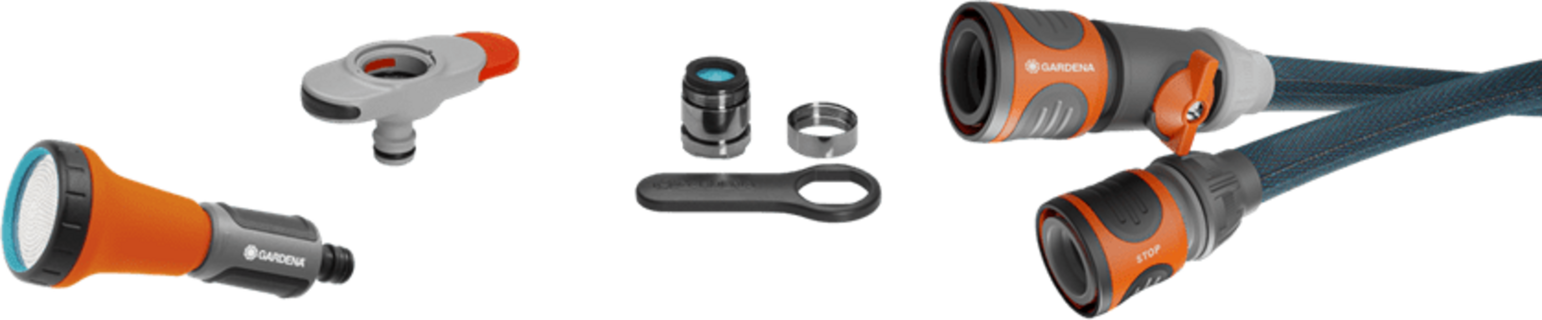 Det omfattande tillbehöret med sin genomtänkta teknik säkerställer att inget droppar och att bevattningen går smidigt. Efter vattningen låter reglerventilen kvarvarande vatten rinna ut och slangen kan förvaras platsbesparande.