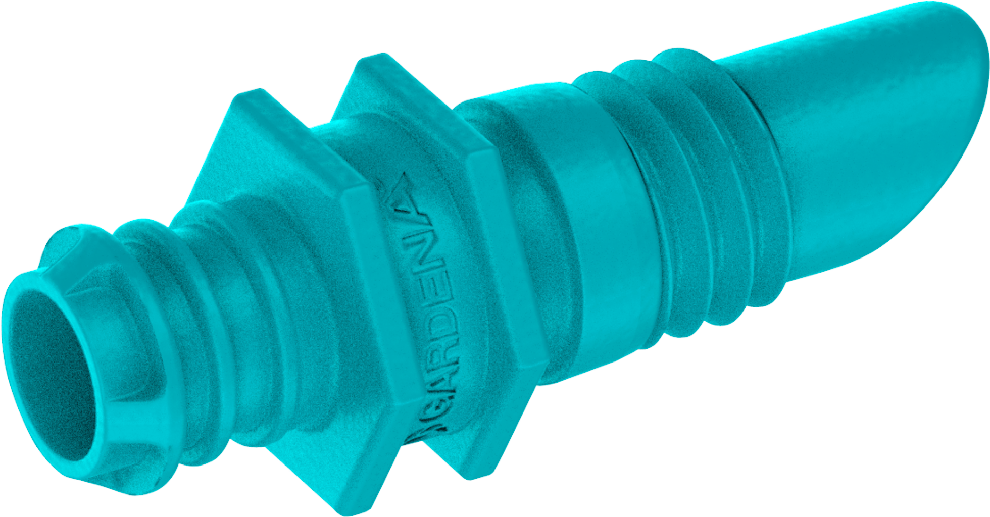 Änddropparna kan enkelt användas i slutet av ett 4,6 mm fördelningsrör för bevattning av enskilda krukväxter. För montering i ett 13 mm installationsrör måste hål först stansas med hjälp av ett särskilt monteringsverktyg. Detta gör det även möjligt att bevattna växtrader eller häckar.