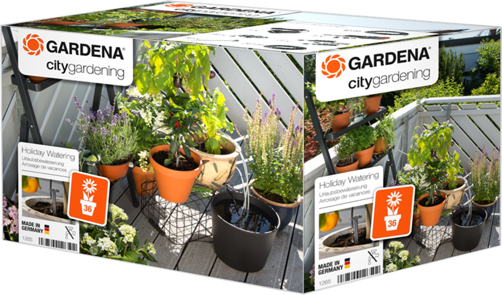 Åk på semester och låt dina växter tas om hand med Gardena semesterbevattning. Med detta system kan upp till 36 krukväxter bevattnas. En timer startar bevattningen varje dag i en minut. Med fördelaren med 12 utgångar kan vattenmängden anpassas för olika växter. Lågspänningstransformatorn kan användas både inomhus och utomhus.