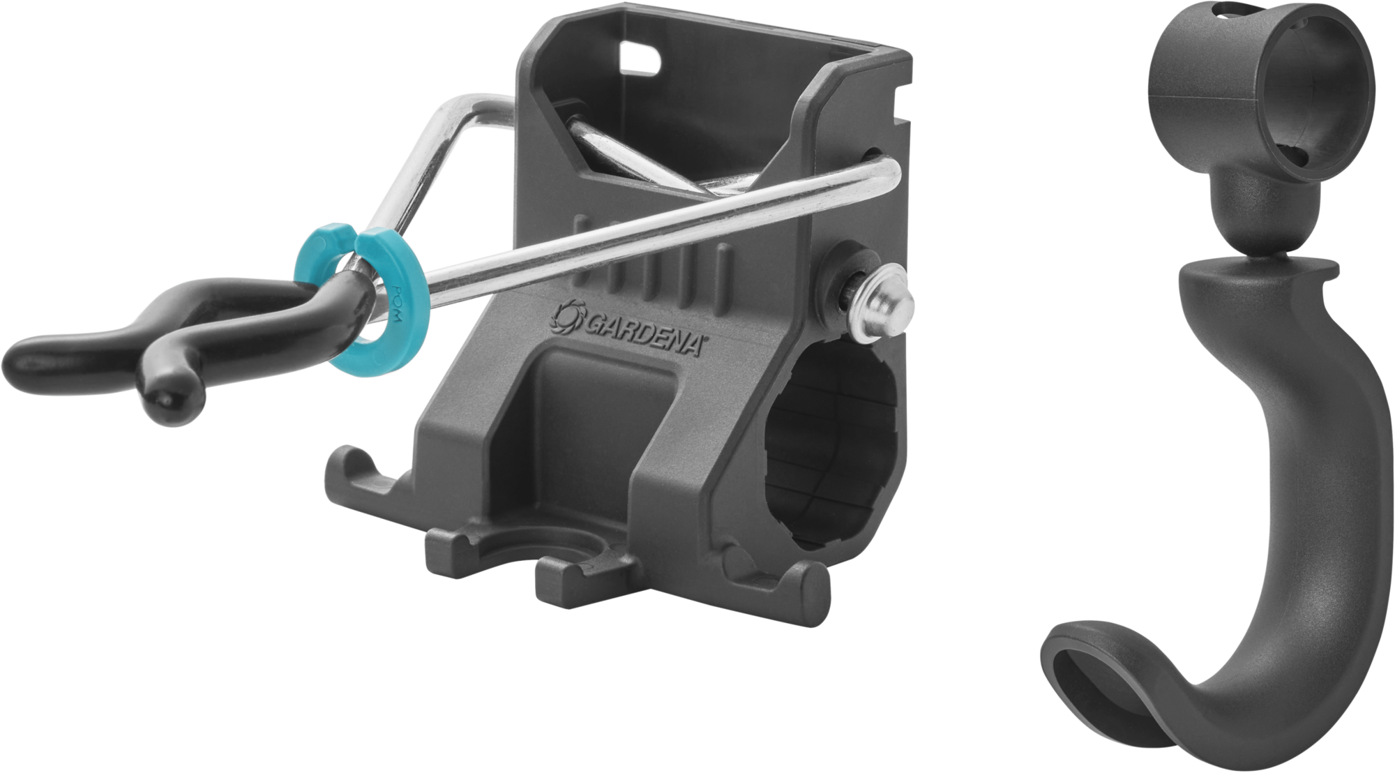 Detta set, bestående av en hållare och en krok, är kompatibelt med GARDENA redskapshållare Plus.