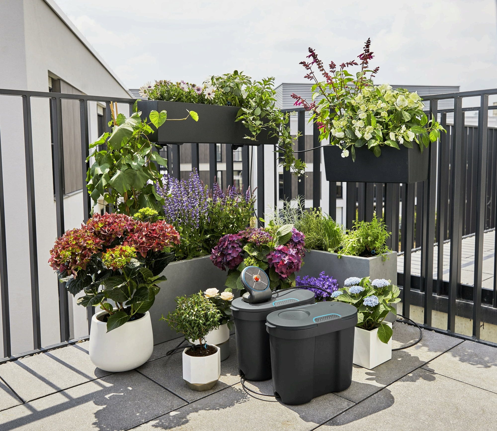 - Tack vare sin stilrena design smälter AquaBloom bevattningssystem harmoniskt in på moderna balkonger och terrasser