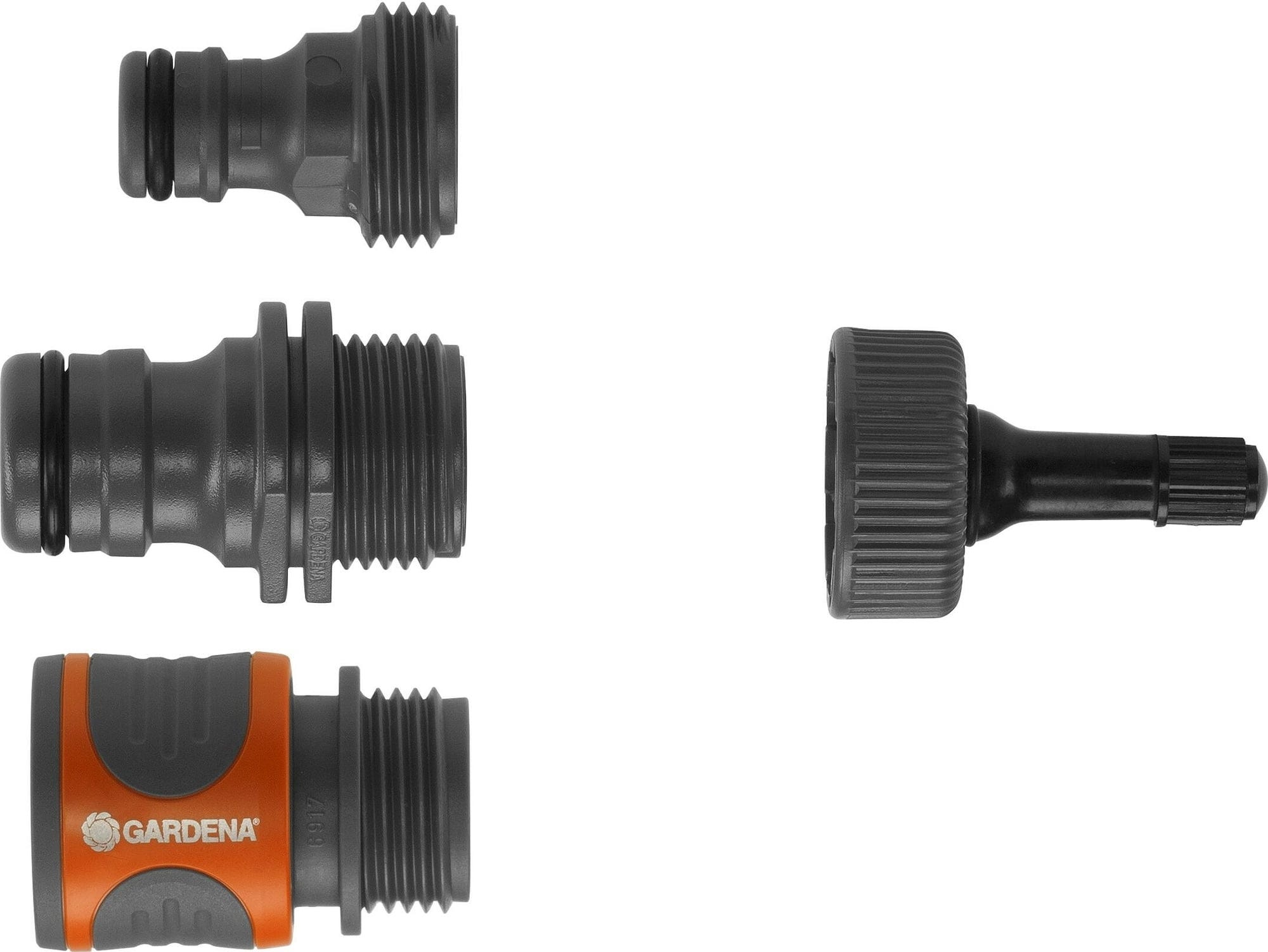 - Innehåll: 1 standardiserad autoluftventil, 3 olika adaptrar för Original GARDENA System slangkoppling, Original GARDENA System nippel och Profi-System nippel