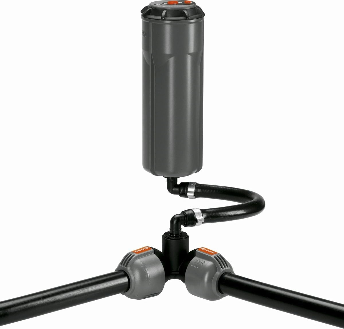 GARDENA vinkelkoppling 25 mm x 3/4"" invändig gänga används tillsammans med spridaranslutningar (se tillbehör) för flexibel anslutning av pop-up-spridarna S 30, S 50, S 80, S-ES och S-CS samt turbinspridarna T 100, T 200 och T 360.