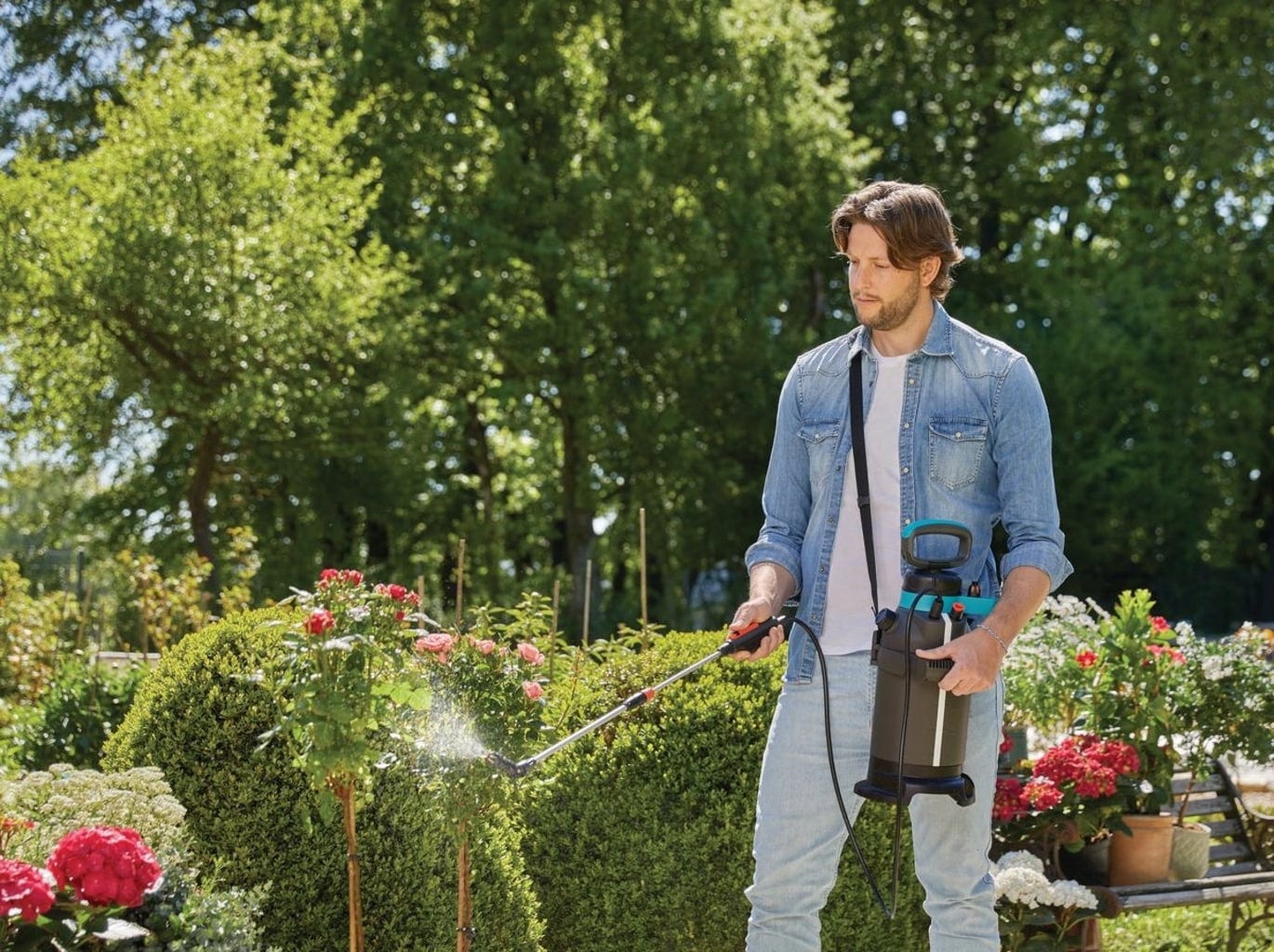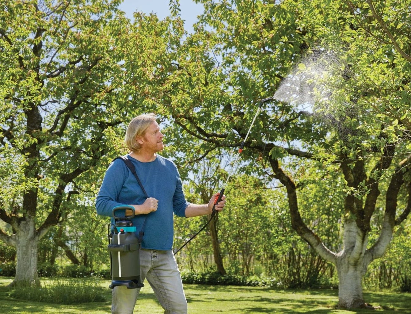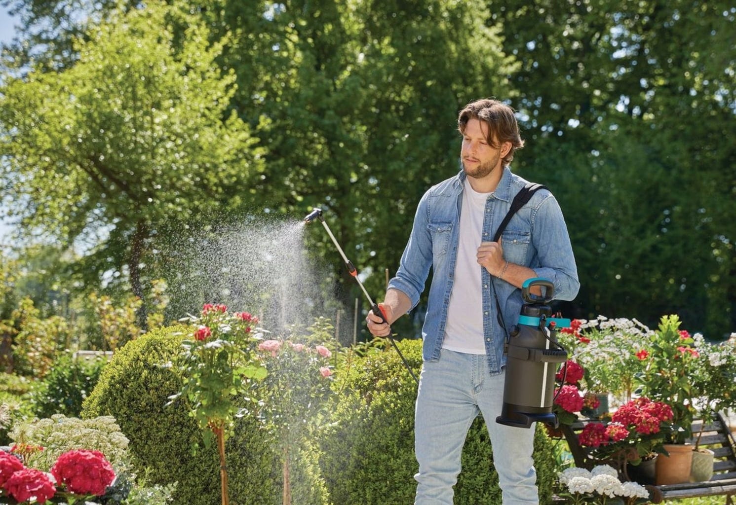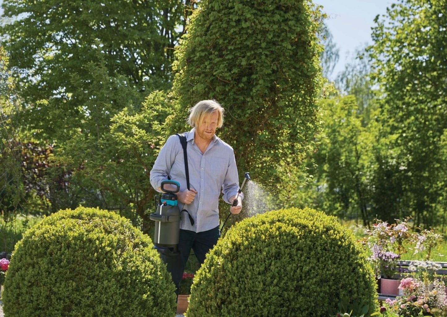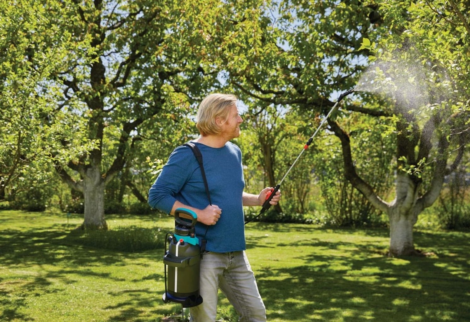 Behöver du en spruta för exakt applicering av växtskydds- eller stärkande medel i trädgården? Och den ska vara högkvalitativ och enkel att använda? Då är denna tryckspruta "5 L EasyPump" helt rätt för dig! Tack vare litiumjonbatteriet sker sprutningen med ett knapptryck, helt utan pumpning. Den är tillverkad i plast med bred nivåindikator för enkel kontroll av vätskenivån, teleskopisk sprutlans med vinklingsbart mässingsmunstycke - perfekt för undersidesbesprutning av blad - samt stor trampyta för enkel pumpning och stabil placering. En extra öppning gör det enkelt att fylla på, blanda och tömma. Locket fungerar som doseringskopp för gödsel eller växtskyddsmedel. Praktisk är även impulsavtryckaren med permanent låsning. Vad mer kan man önska?