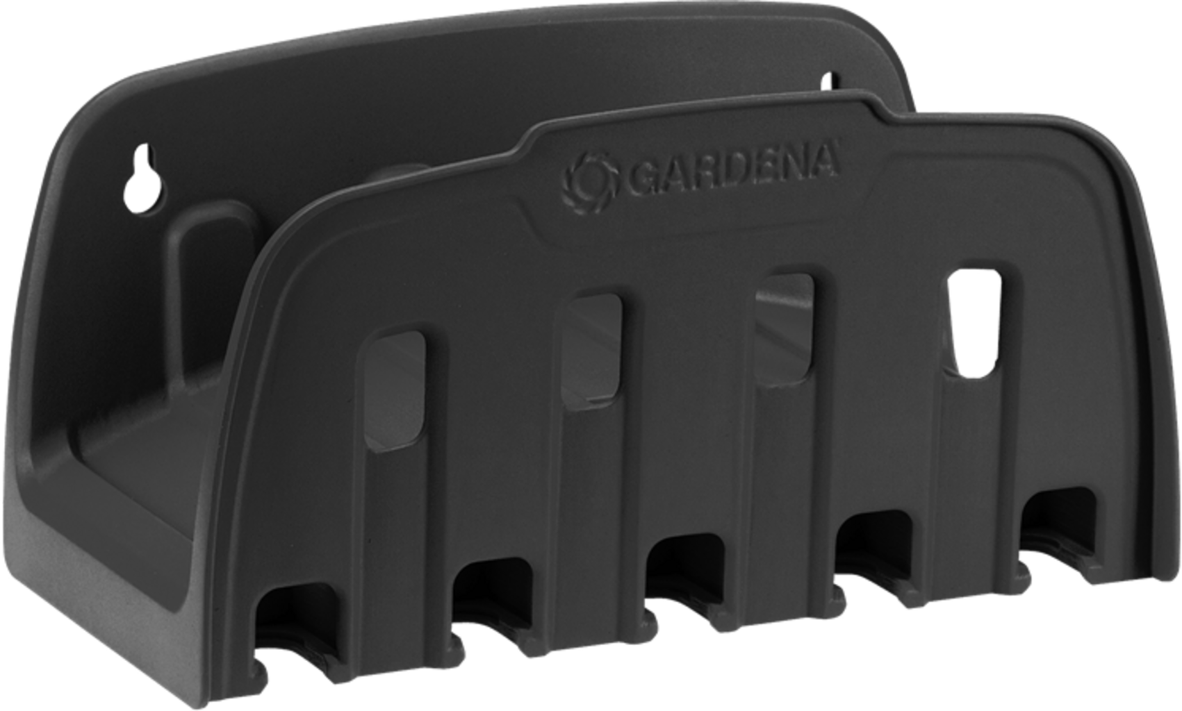 Spara plats och håll ordning i trädgården! Med denna väggslanghållare förvaras slangen perfekt - helt utan veck och trassel. Munstycken och sprutor kan självklart också förvaras på hållaren. Det robusta och slitstarka materialet är frosttåligt och klarar alla väderförhållanden.