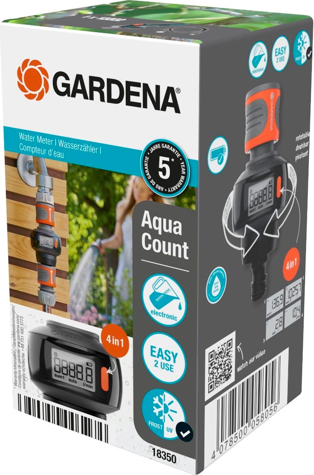 Vattenmätaren AquaCount från GARDENA hjälper dig att använda den värdefulla resursen vatten ännu mer ansvarsfullt genom att mäta, styra och kontrollera din vattenförbrukning i trädgården. På så sätt har du alltid full koll och slipper slösa bort en enda droppe värdefullt vatten.