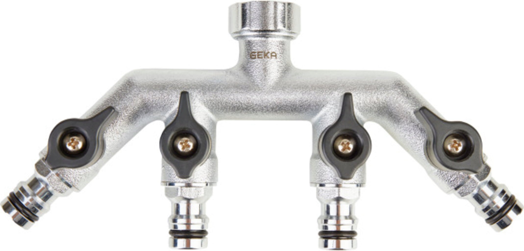Med GEKA® plus fyrvägsventil kan fyra vattenuttag användas på en kran. Tack vare praktiska on/off-omkopplare kan varje ventil stängas av eller öppnas efter behov.