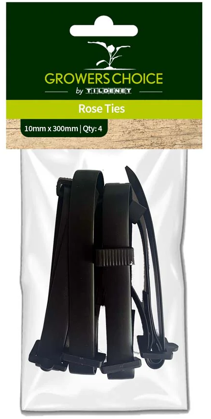 Growers Choice rosband är den perfekta lösningen för att säkert och skonsamt knyta rosor och andra växter. Dessa flexibla plastband har spännen och vaddering, vilket ger ett fast grepp utan att skada stjälkarna. Perfekt för användning i trädgården för att hålla växterna stabila och upprätta.
