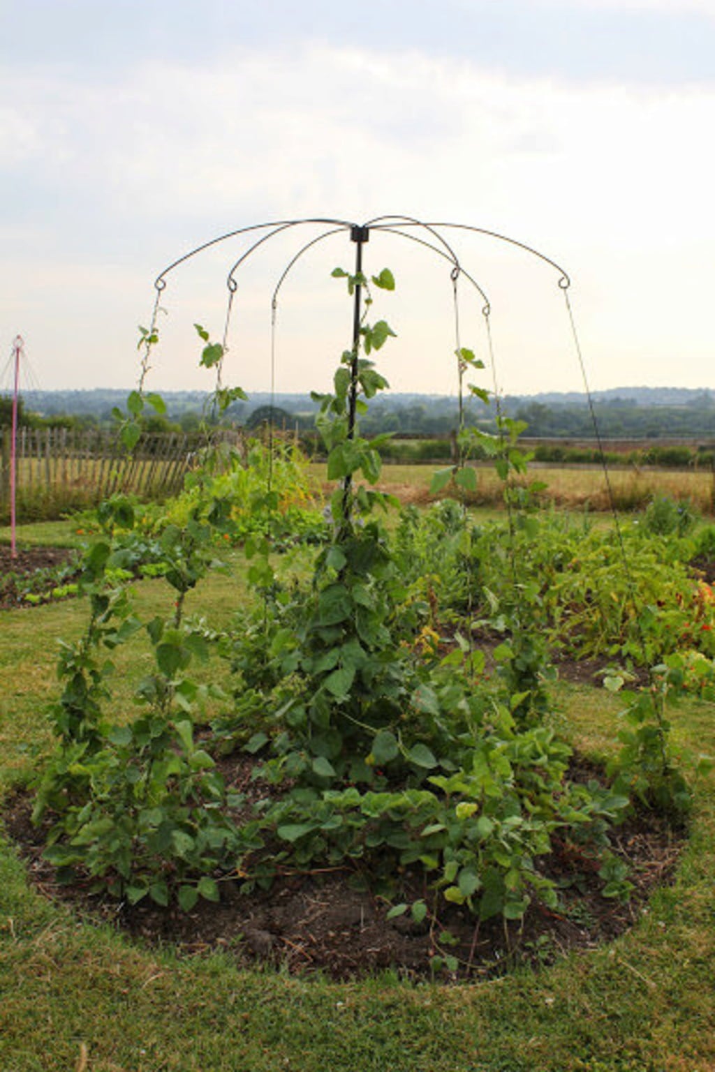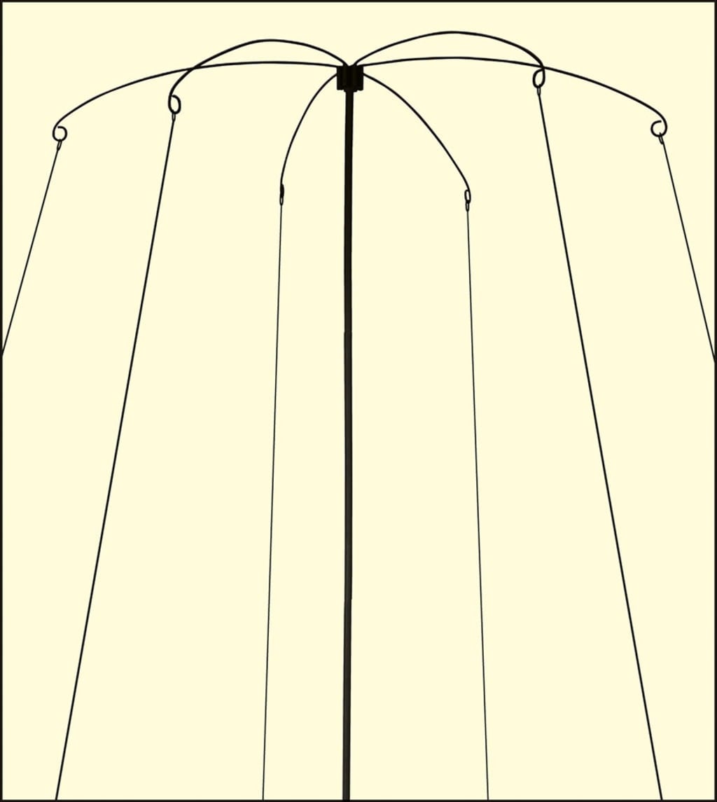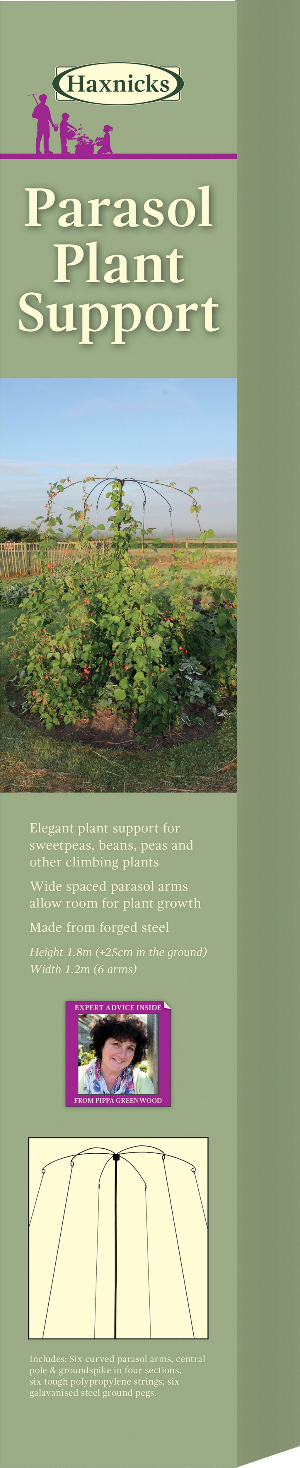 Denna smarta klätterställning vecklas ut likt ett parasoll och är en elegant lösning för dina klättrande växter såsom ärtor, bönor och andra slingerväxter. De böjda armarna på ”parasollen” ger tillräckligt med utrymme för att plantorna ska kunna klättra fritt. Leveransen inkluderar 6 böjda armar, 1 mittstång, ett jordspett och 6 galvaniserade stålpinnar.