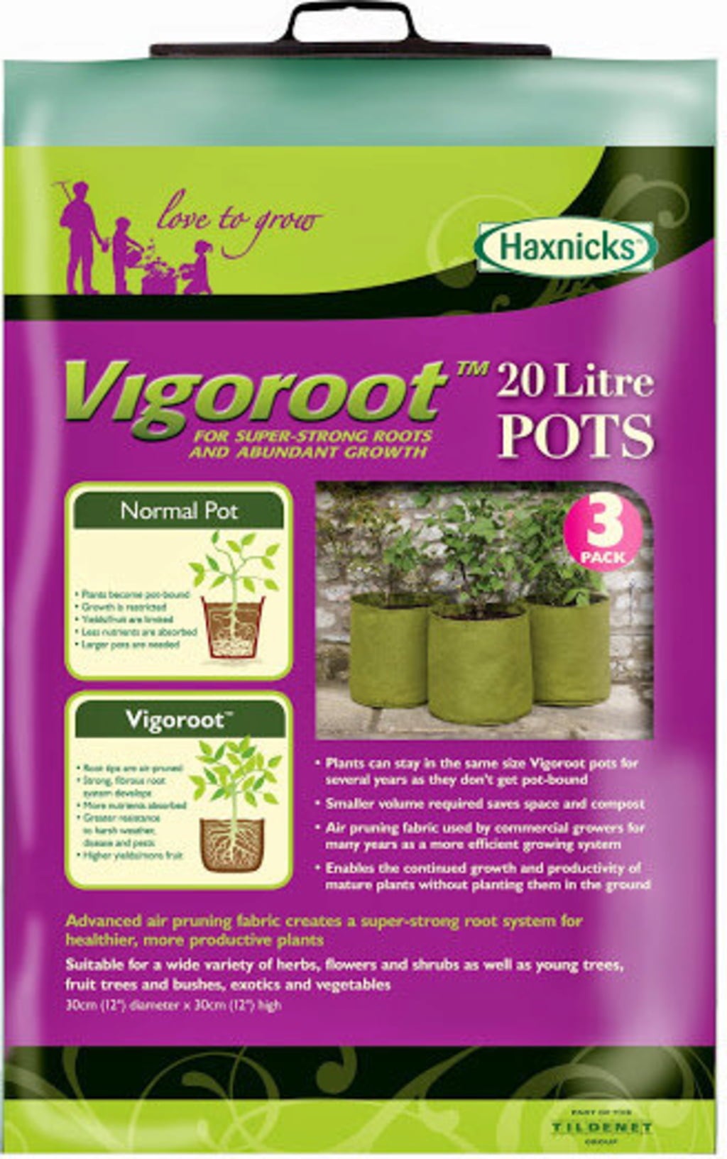Hemligheten bakom Vigoroot-tygets magi ligger i dess förmåga att luftbeskära rötterna. Det stimulerar ett kraftigare rotsystem och förbättrar växternas förmåga att ta upp näring. På så vis kan plantor växa sig stora och frodiga även i mindre krukor. Det superstarka rotsystemet gör dessutom växterna mer motståndskraftiga mot tufft väder och sjukdomar.