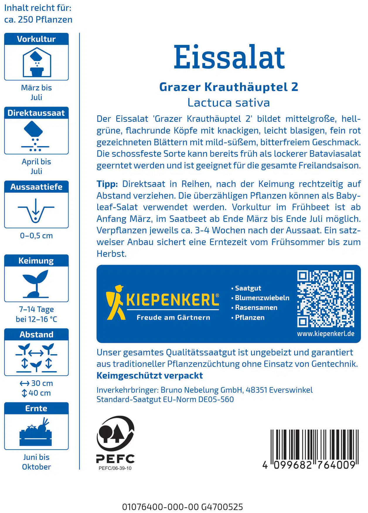 Kiepenkerl Eissallat Grazer Krauthäuptl 2, 250 Frön