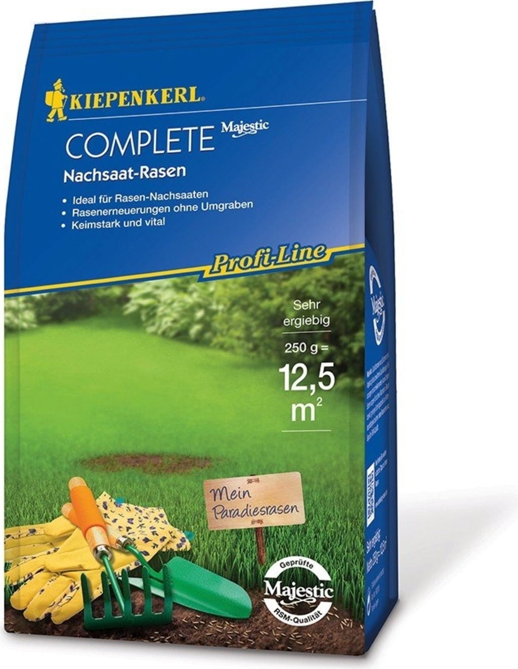 Kiepenkerl Profi-Line gräsfrö "Complete" passar för alla typer av gräsrenovering. Oavsett om gräsmattan är gles, sliten eller skadad av till exempel mullvadshögar, återställer "Complete" snabbt en tät, grön yta. Större fläckar fylls effektivt igen, och den täta växtligheten tränger undan både mossa och ogräs. Snabbgroende och säkra sorter gör att du slipper gräva om hela gräsmattan.