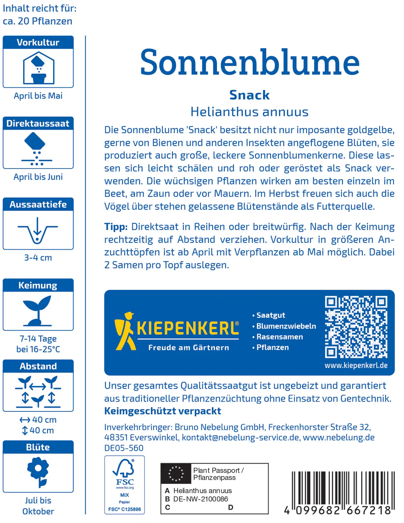 | Innehållet räcker till ca: | 20 plantor |