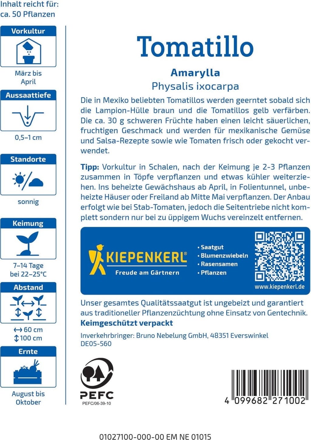 Med sin friskt fruktiga och syrliga smak är tomatillon, ursprungligen från Mexiko är den en verklig delikatess. Frukterna väger upp till 30 g och kan användas både färska och tillagade, precis som tomater.