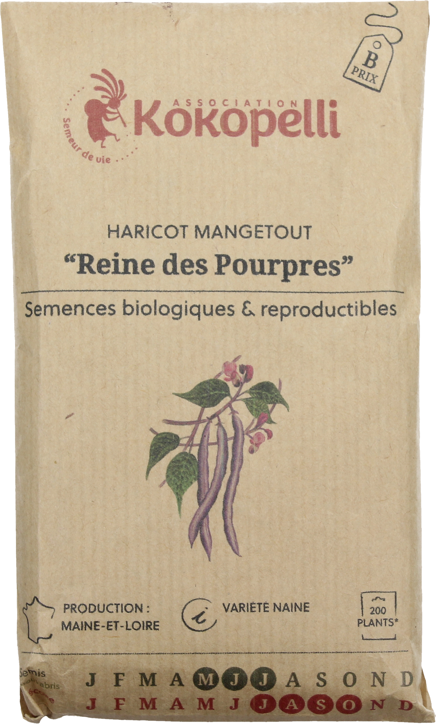 Kokopelli Buskböna "Reine des Pourpres", Eko, 80 g