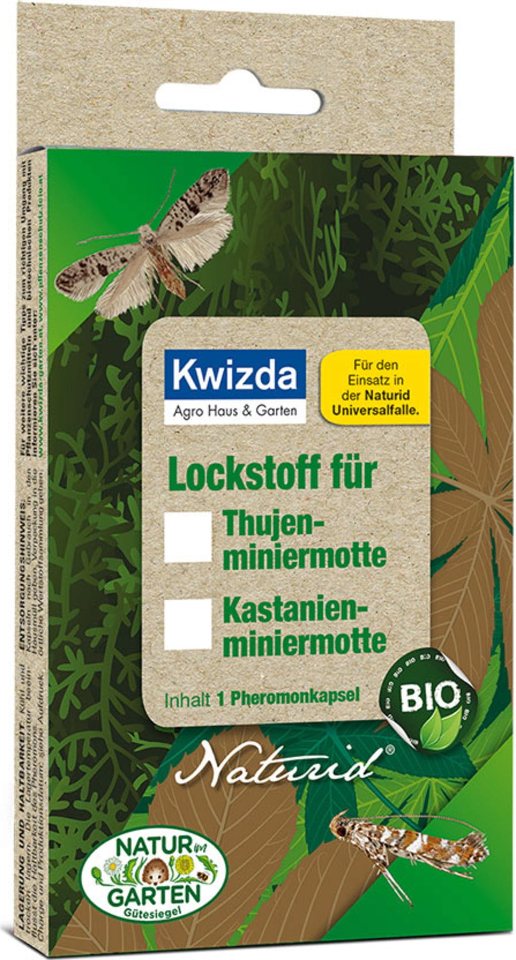 Naturid Lockmedel Thuja Mal är en feromonkapsel som specifikt lockar hanarna av thuja mal. På så sätt kan skadedjurens förökning minskas effektivt - helt utan kemiska medel.