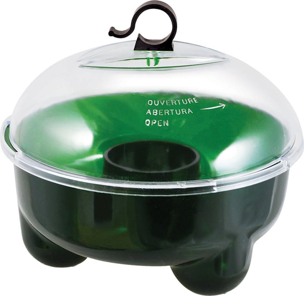 Fyll fällan med vatten eller utspädd lösning beroende på skadedjur och placera i det passande lockmedlet. Det finns 7 olika lockmedel, till exempel för sniglar, flugor, getingar eller fjärilslarver.