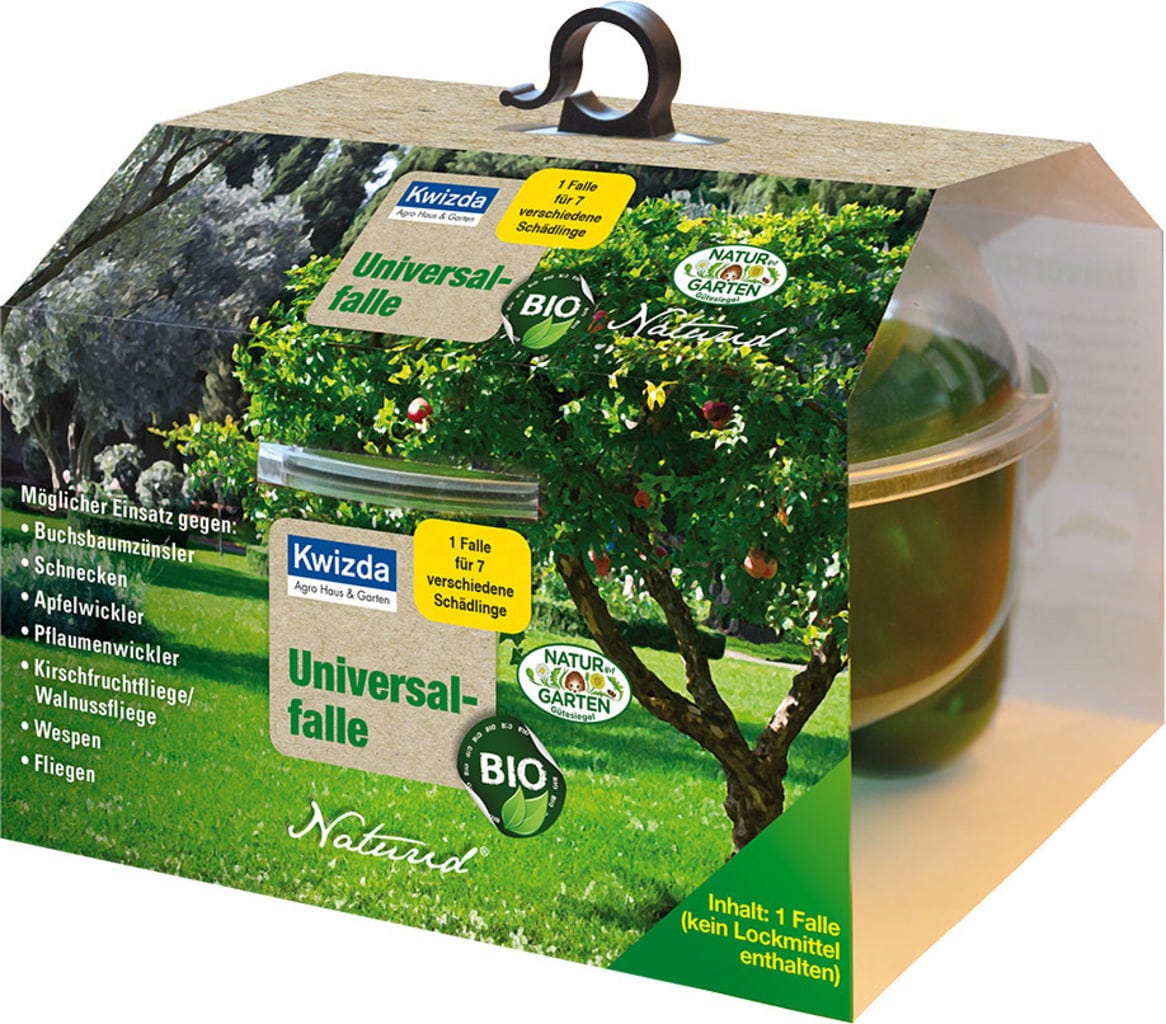 Naturid Universalfälla är ett praktiskt och mångsidigt hjälpmedel som gör det enkelt att biologiskt övervaka skadedjur som sniglar, getingar, flugor eller skadefjärilar i trädgården. Med separat tillgängliga lockmedel kan fällan anpassas flexibelt för olika typer av skadedjur - perfekt för frukt, grönsaker, prydnadsväxter eller allmänt i trädgården. På så sätt upptäcker du angrepp i tid och kan agera riktat utan att använda kemiska medel.