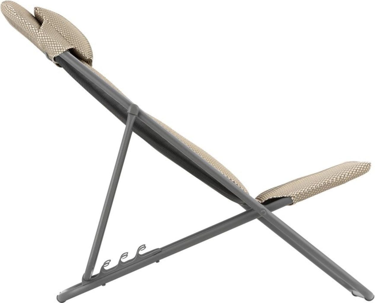 Den hopfällbara MAXI TRANSAT+ solstolen imponerar med sin robusta, korrosionsbeständiga stålrörsram och sin bekväma bredd. Den har även ett bekvämt klädt överdrag och en avtagbar kudde. Säkerhetsräcket gör att ryggstödets lutning kan justeras till olika positioner - för trevliga vilopauser i trädgården, på terrassen eller vid poolen.