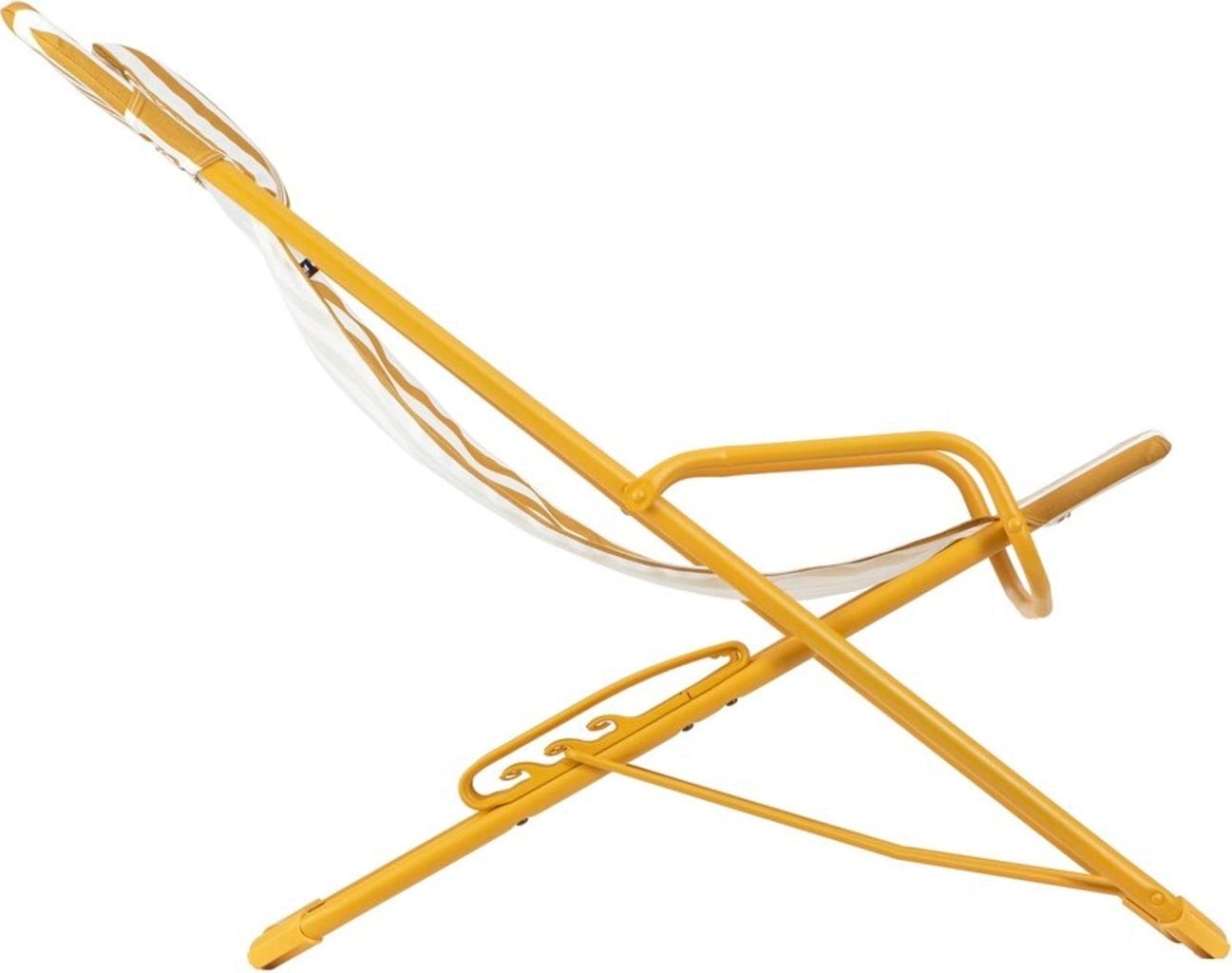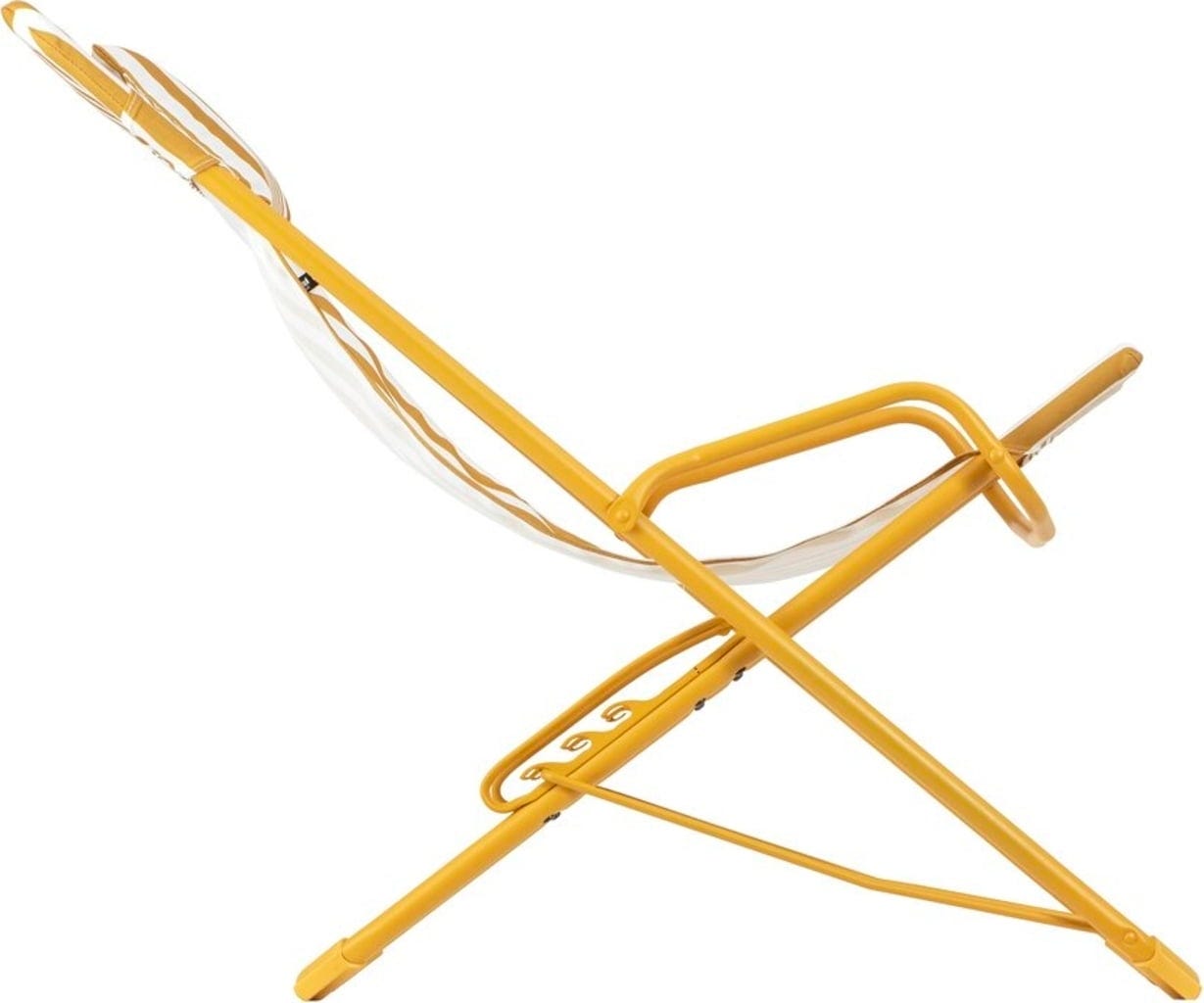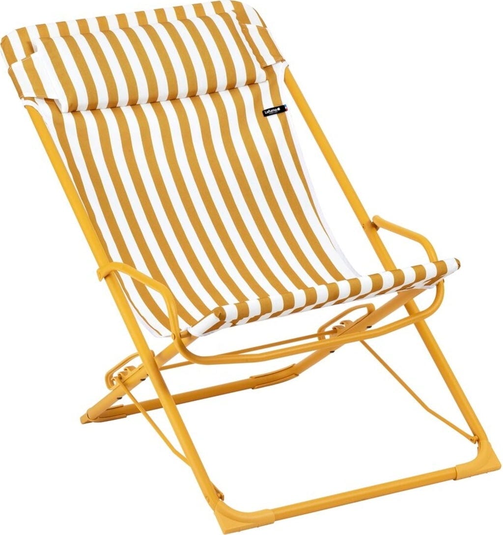 Oavsett om du vill sitta upprätt i sällskap, läsa i lugn och ro eller sträcka ut dig en stund växlar du smidigt mellan tre bekväma positioner med det säkra låssystemet och den praktiska styrstången. Den högkvalitativa Airlon-klädseln i maritim stil ger ett stilrent intryck på balkongen eller i trädgården. Stolen fälls enkelt ihop platt och får plats även i mindre utrymmen.