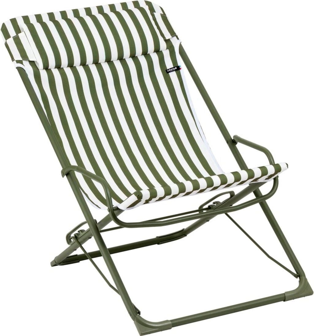 Oavsett om du vill sitta upprätt i sällskap, läsa i lugn och ro eller sträcka ut dig en stund växlar du smidigt mellan tre bekväma positioner med det säkra låssystemet och den praktiska styrstången. Den högkvalitativa Airlon-klädseln i maritim stil ger ett stilrent intryck på balkongen eller i trädgården. Stolen fälls enkelt ihop platt och får plats även i mindre utrymmen.
