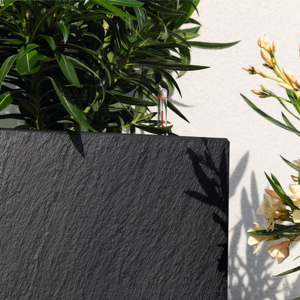 Ge din trädgård eller terrass en elegant look med planteringskärlet CANTO Slatestone. Här kombineras smakfull skifferoptik med prisbelönt design. Kärlet erbjuder gott om utrymme för praktfulla växtarrangemang och blir, tack vare sitt integrerade Original LECHUZA-vattensystem, en perfekt följeslagare för dina gröna favoriter.
