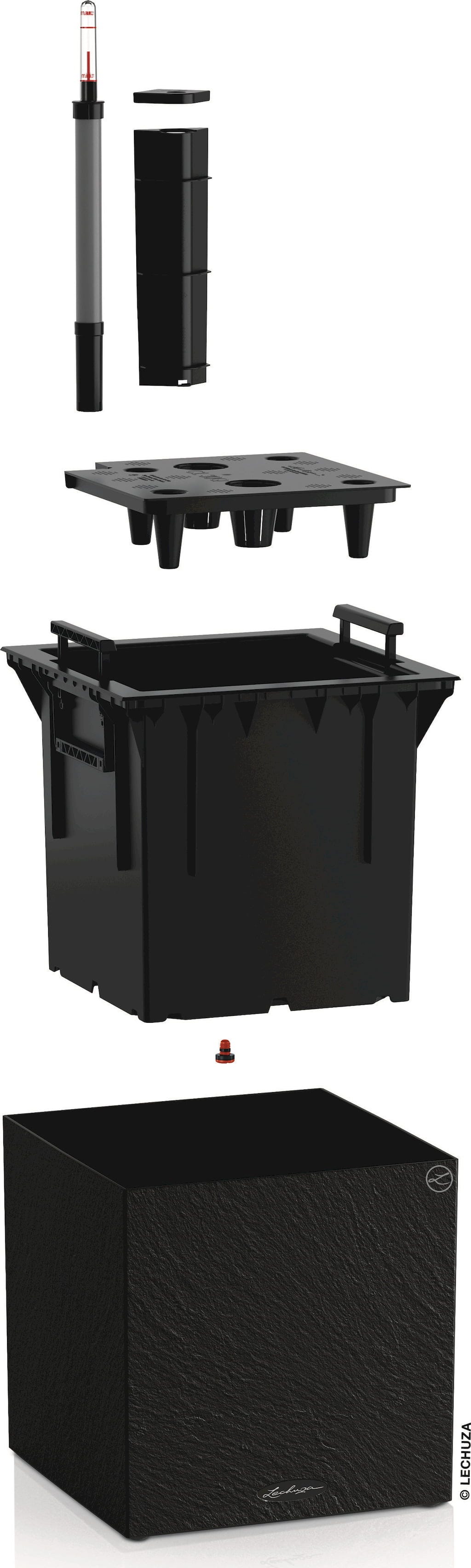 - Integrerat Original LECHUZA-vattensystem som förser växterna optimalt med vatten.