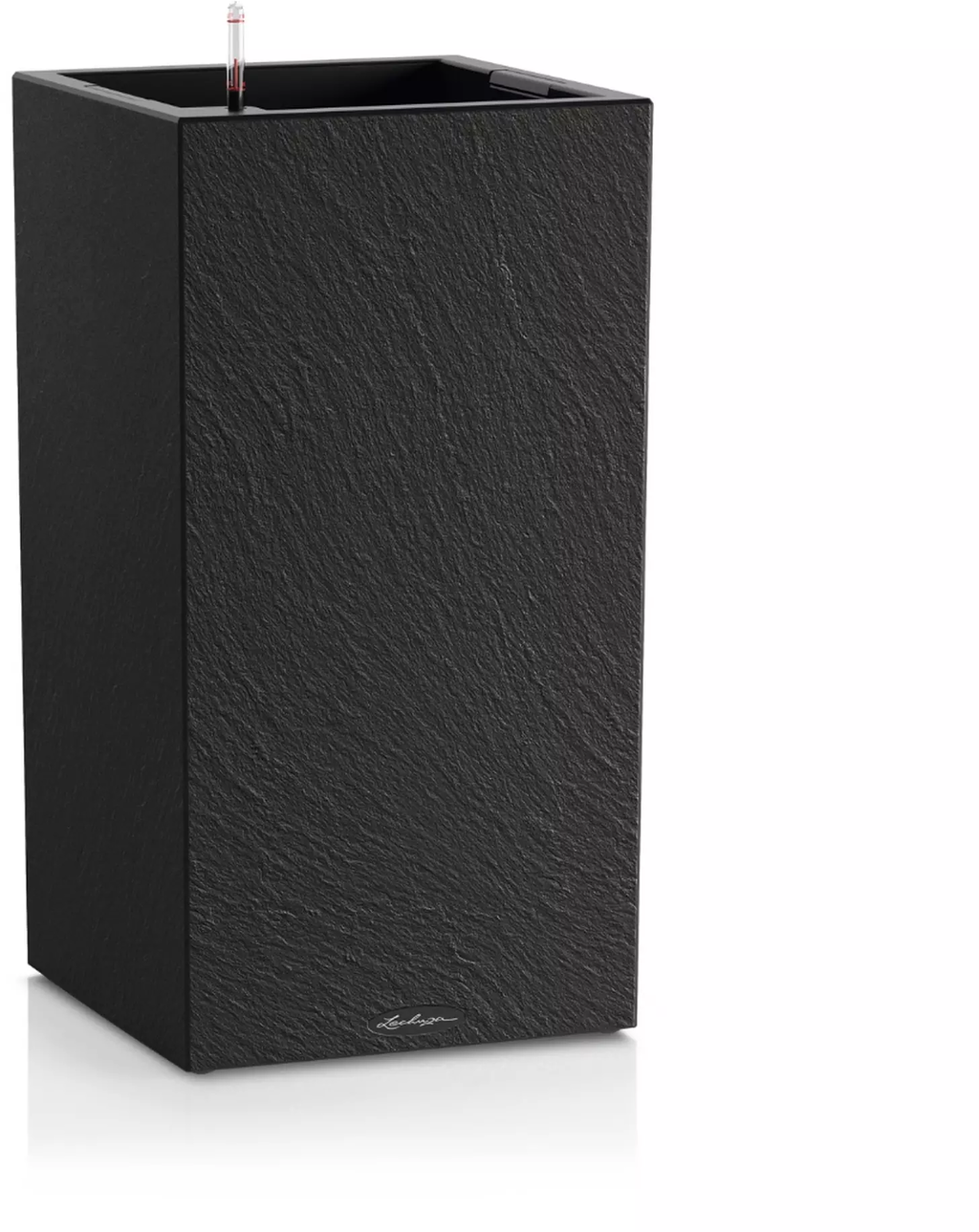 Ge din trädgård eller terrass en elegant look med planteringskärlet CANTO Slatestone. Här kombineras smakfull skifferoptik med prisbelönt design. Kärlet erbjuder gott om utrymme för praktfulla växtarrangemang och blir, tack vare sitt integrerade Original LECHUZA-vattensystem, en perfekt följeslagare för dina gröna favoriter.