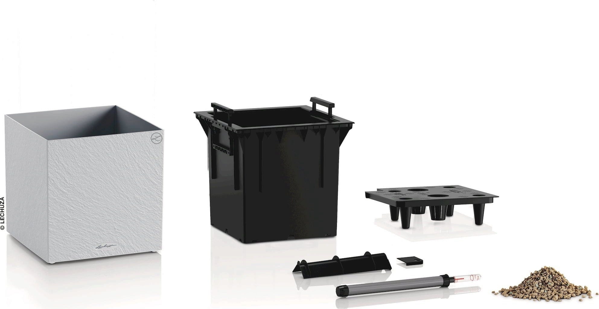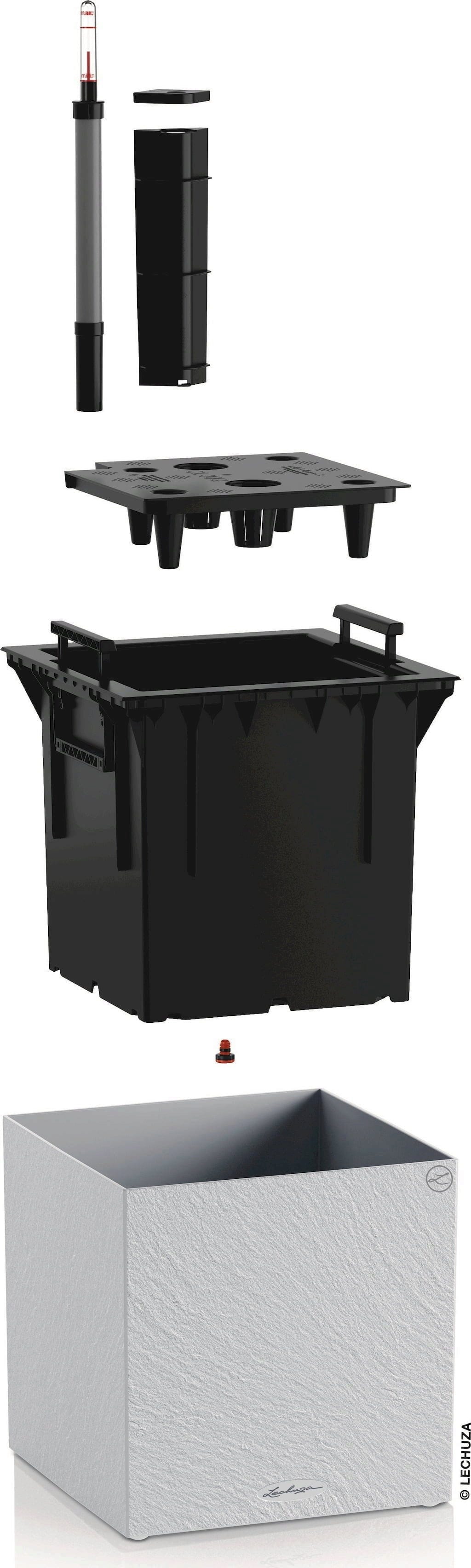 - Integrerat Original LECHUZA-vattensystem som förser växterna optimalt med vatten.